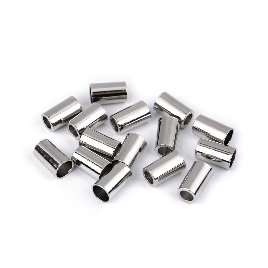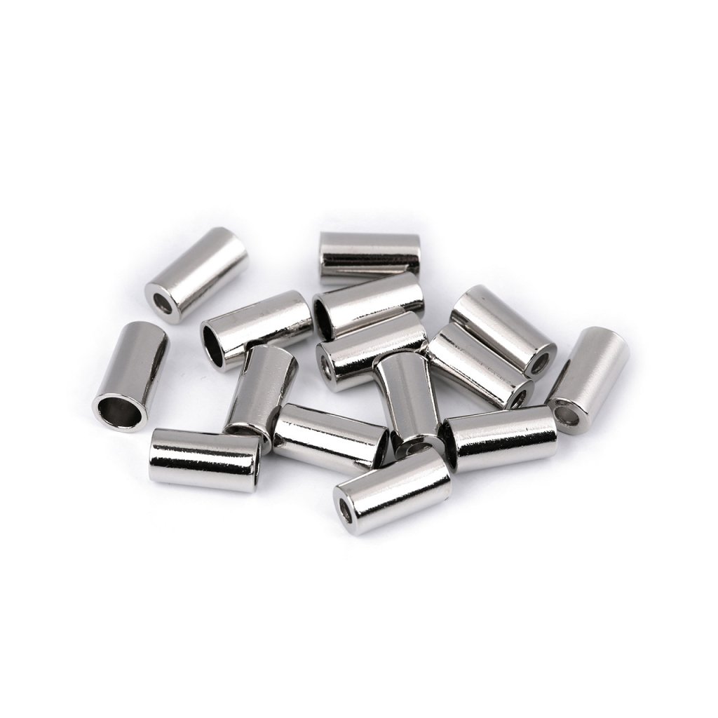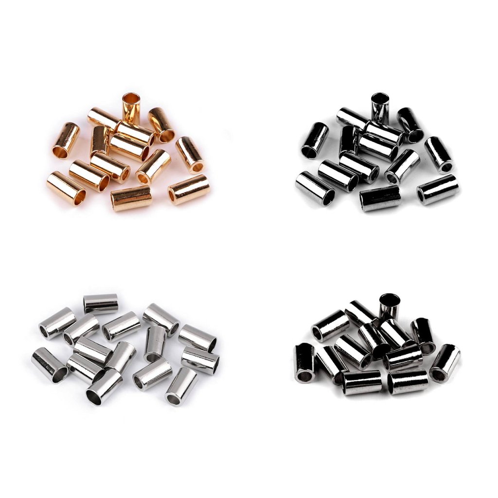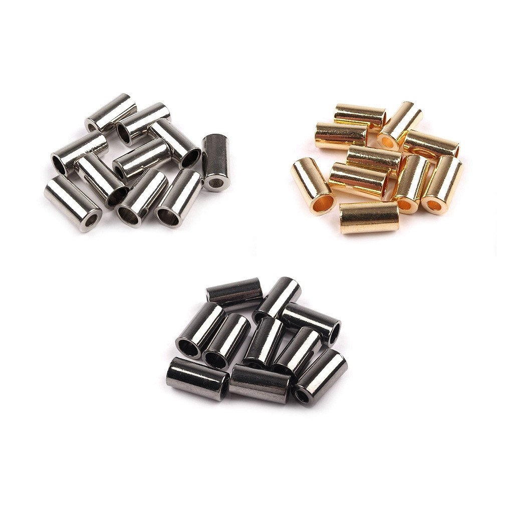 Hladká kovová koncovka zabraňuje vytažení šnůry z tunýlku. Využijete ji k zakončení šňůrek, které lemují rukávy, kapuce nebo spodní lem mikin a bund.