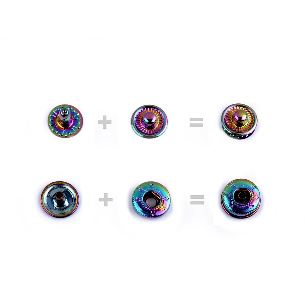 Kovové druky Ø12 mm na středně silné látky, duhové