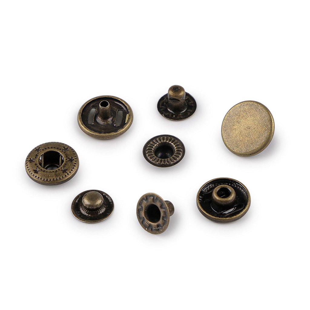 Kovové druky z nerezové oceli využijete na oděvy, tašky, kabelky apod. Nýtování se provádí lisem, který najdete pod kódem 070241 nebo 790770 a pistonem.