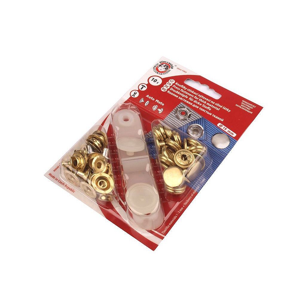 Knoflíky stiskací s kroužkem Ø15 mm na silné látky, zlaté