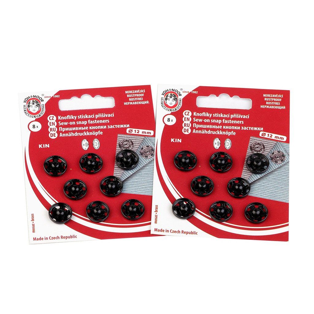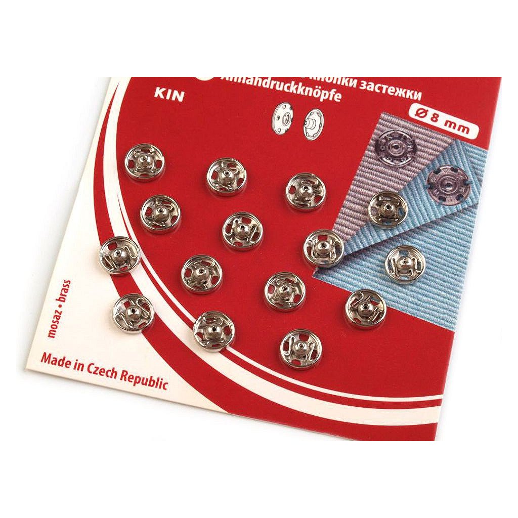 Velikost 2 má průměr: díl pérová část 10 mm, díl kulička 9 mm. Na kartě je 8 knoflíků.