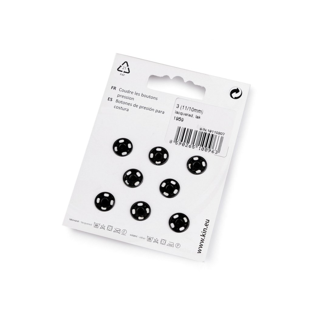 Velikost 3 má průměr: díl pérová část 11 mm, díl kulička 10 mm. Na kartě je 8 knoflíků.