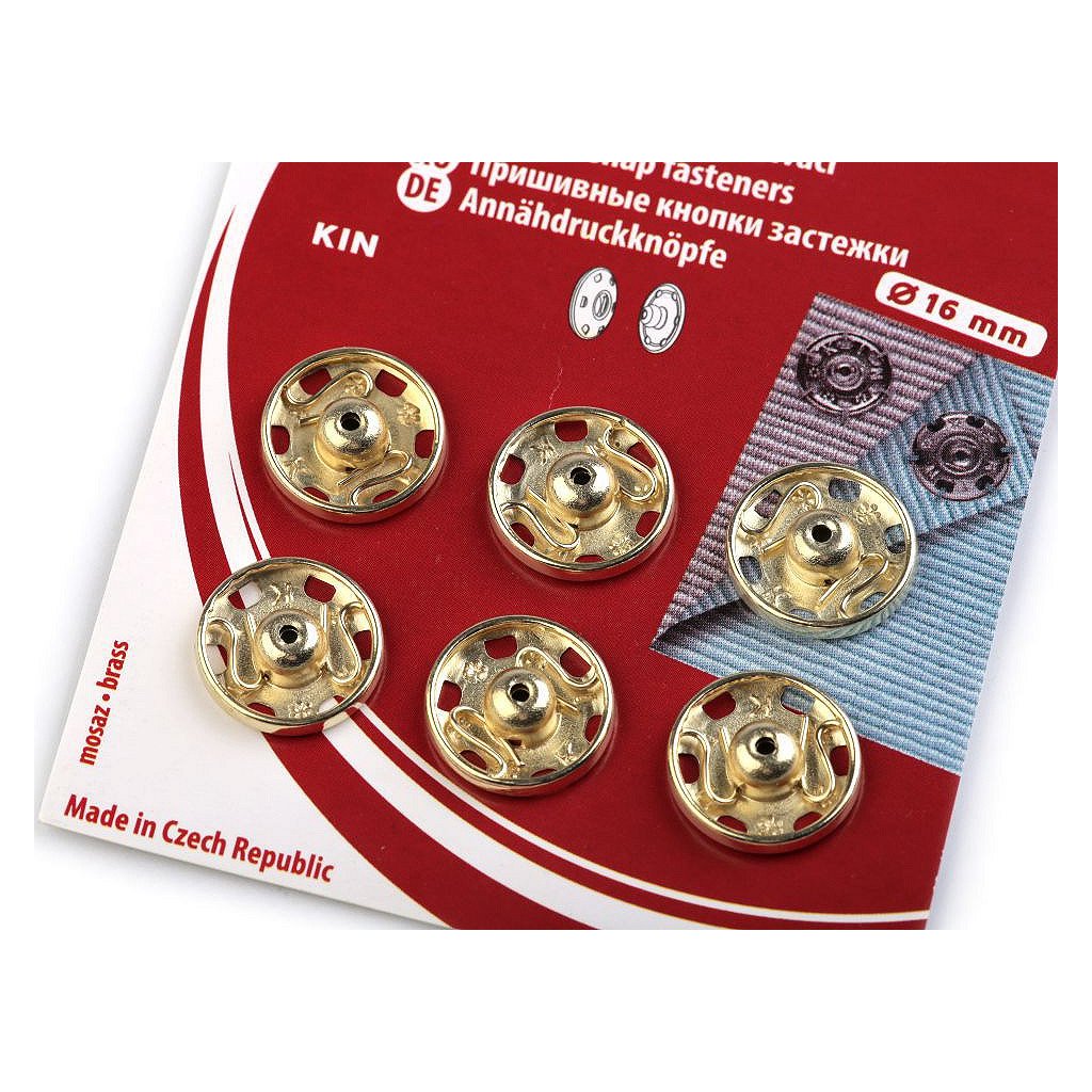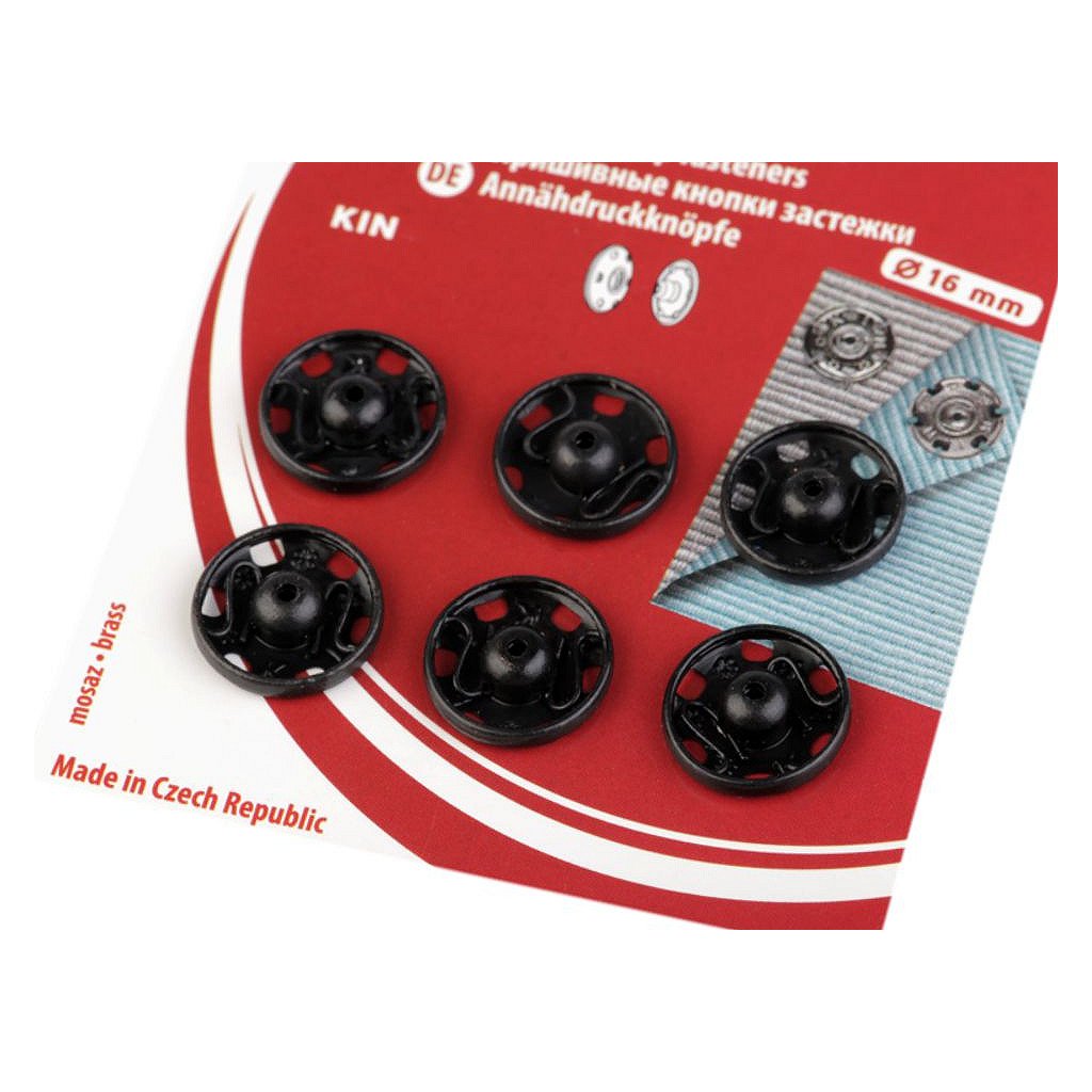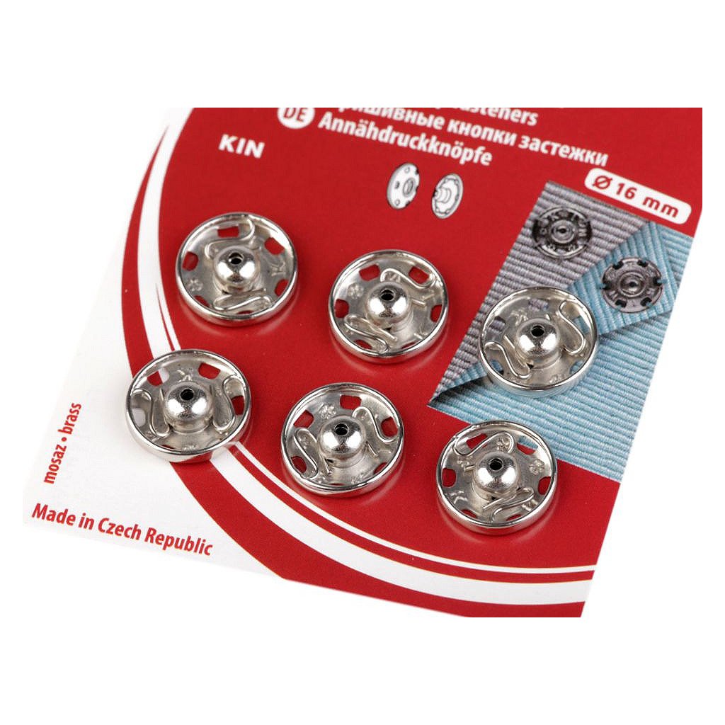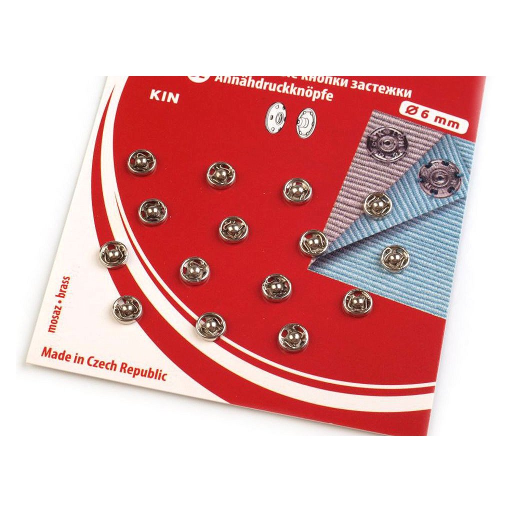 Velikost 6 má průměr: díl pérová část 15,9 mm, díl kulička 15 mm. Na kartě je 6 knoflíků.