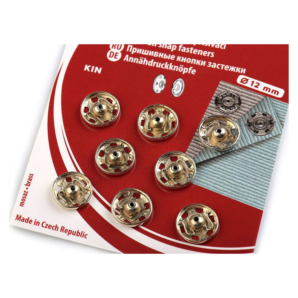 Velikost 4 má průměr: díl pérová část 12,4 mm, díl kulička 11,5 mm. Na kartě je 8 knoflíků.