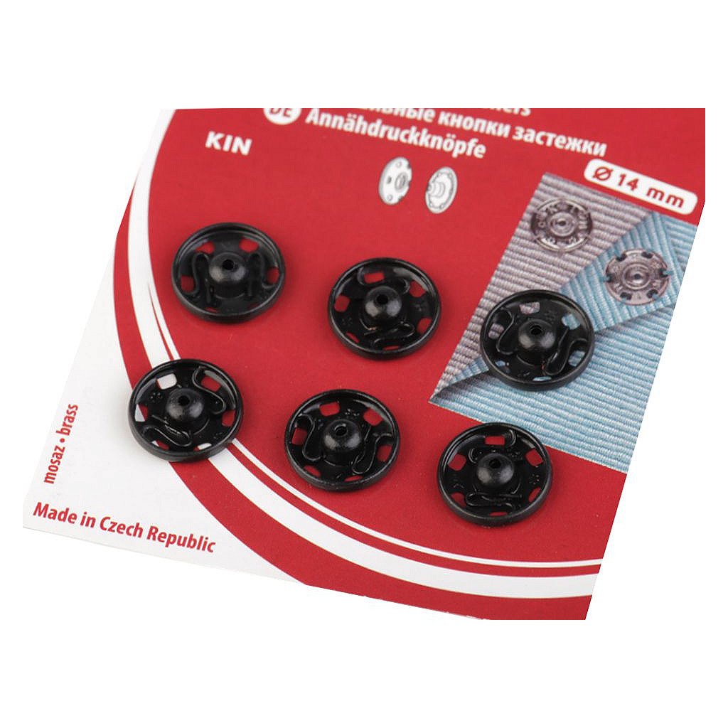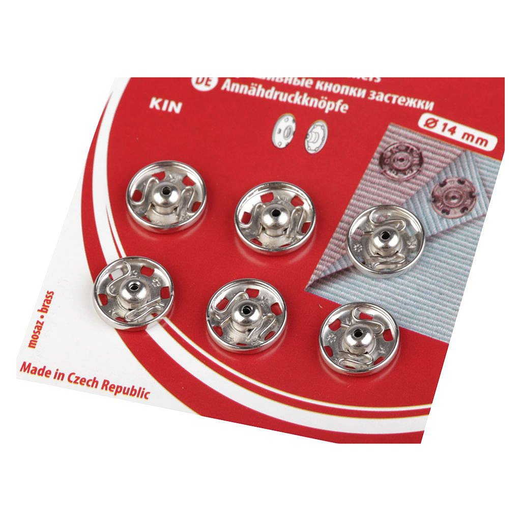 Velikost 5 má průměr: díl pérová část 13,9 mm, díl kulička 13 mm. Na kartě je 6 knoflíků.