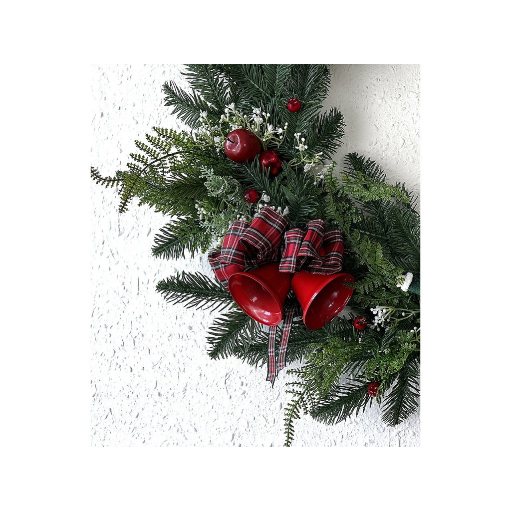 Kovové zvonečky využijete jako vánoční závěsnou dekoraci. Nahoře jsou ozdobené větvičkou, mašličkou a bobulemi. Mají poutko k zavěšení, můžete je pověsit na stromeček, větvičku ve váze nebo na dekorační girlandy a věnce.