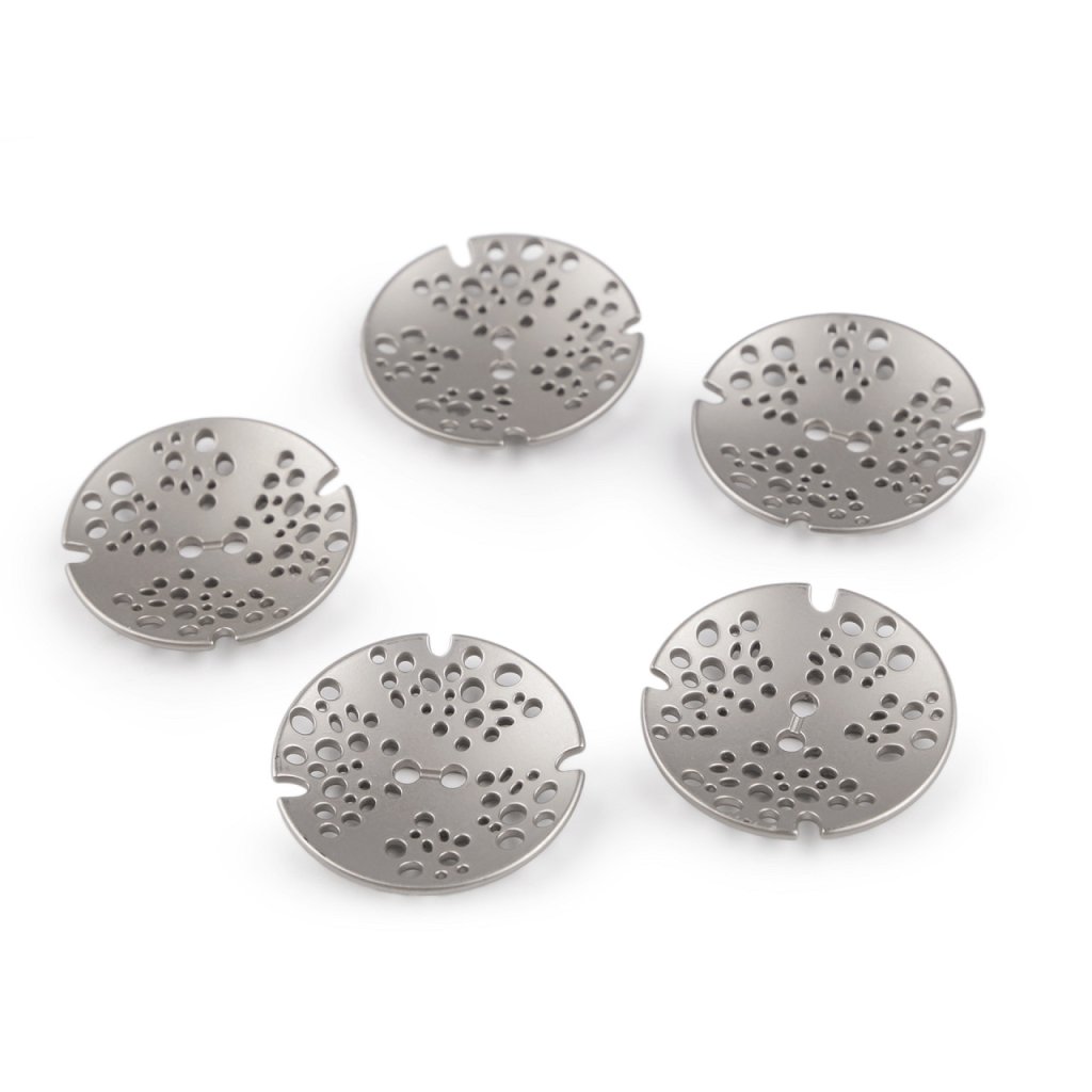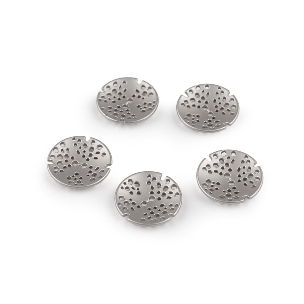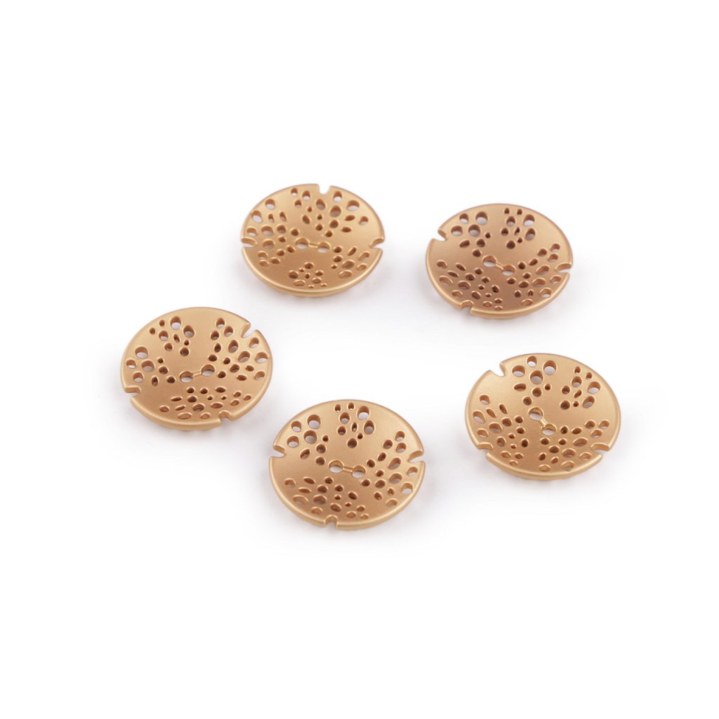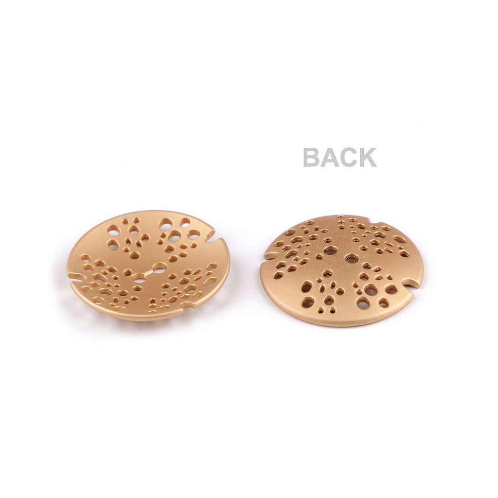 Kovové knoflíky s děrovaným designem vyniknou na kabátech, sakách, bundách nebo kardiganech. Jsou kvalitní, lehce vypouklé a na oděvech upoutají pozornost.