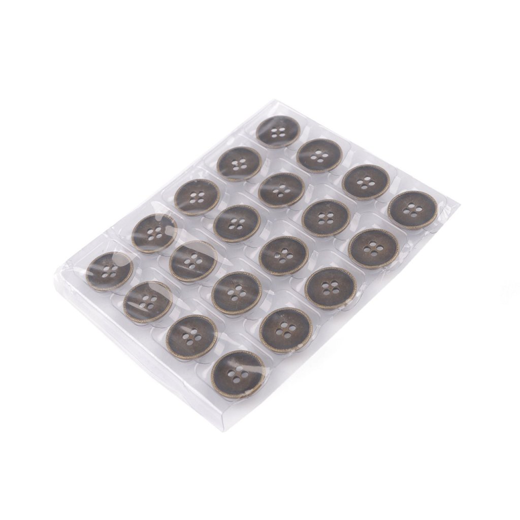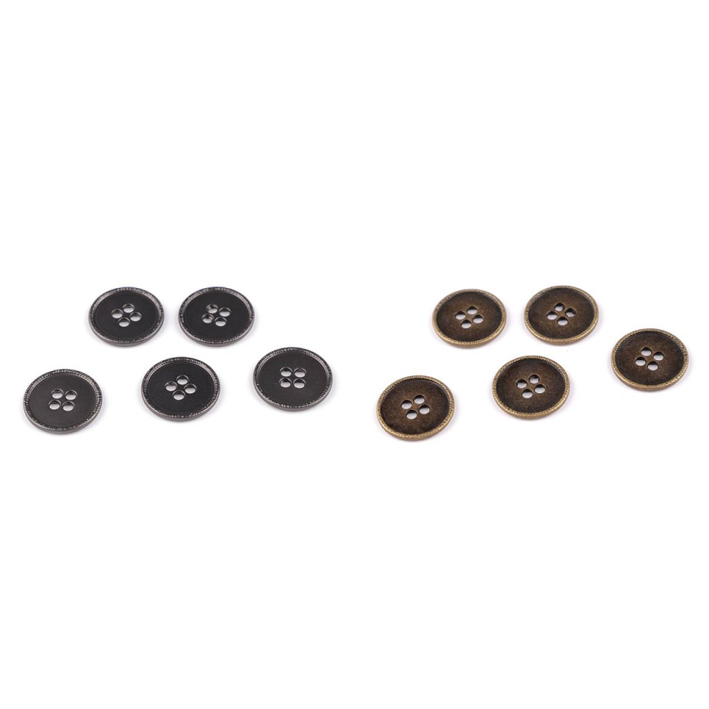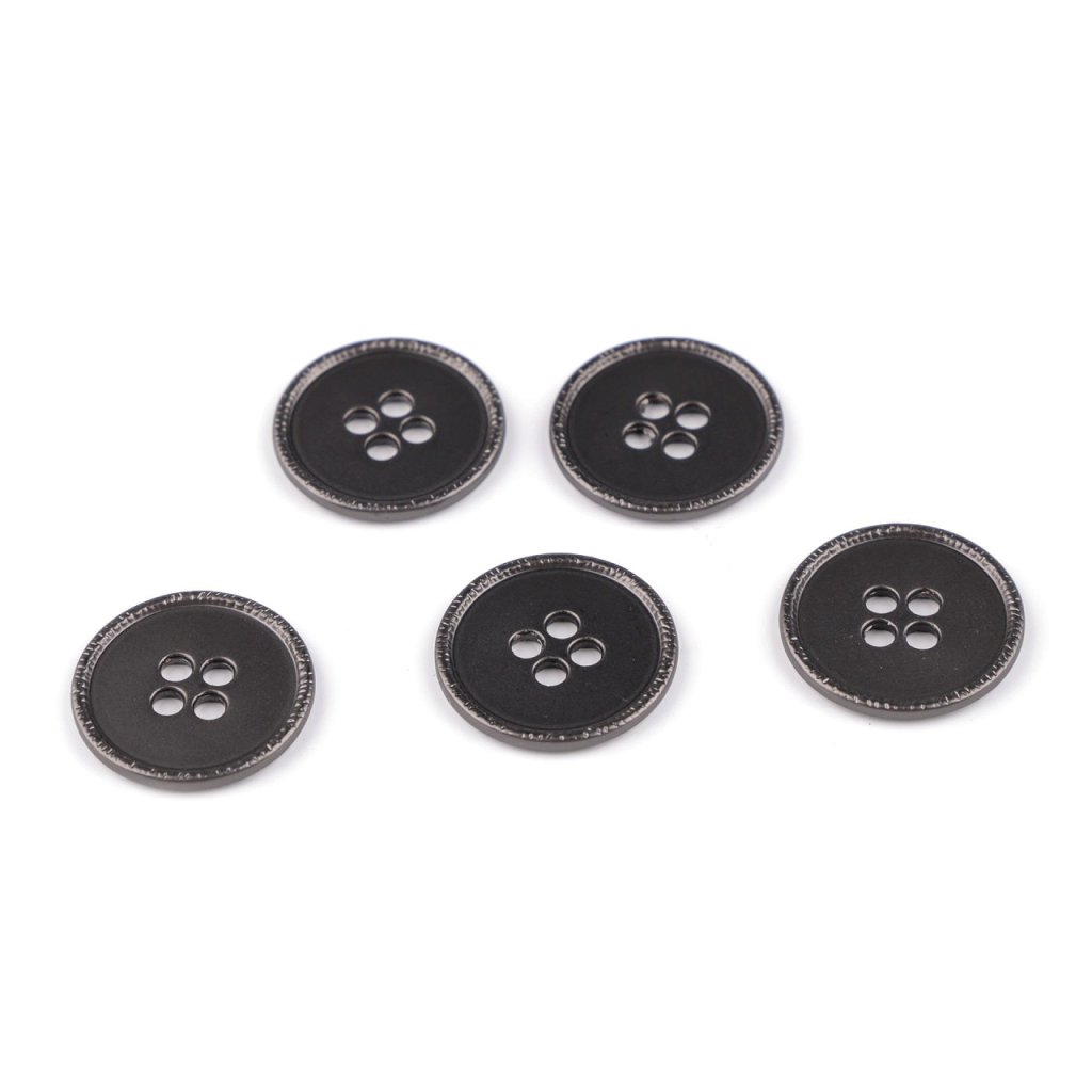 Kovové knoflíky vynikají designem i kvalitou. Z lícové strany jsou hladké, s matným leskem, okraje jsou vystouplé s reliéfem. Knoflíky vyniknou na bundách, kabátech i modernějších sakách.