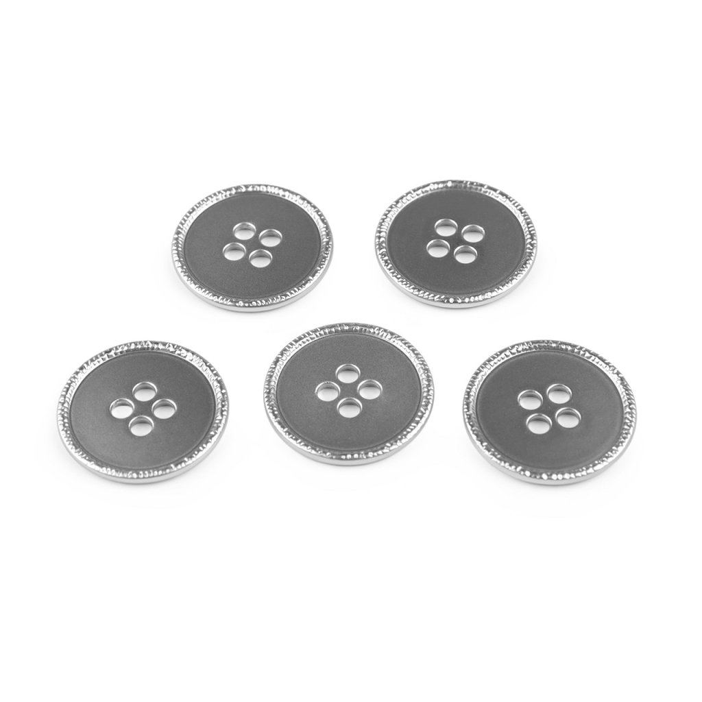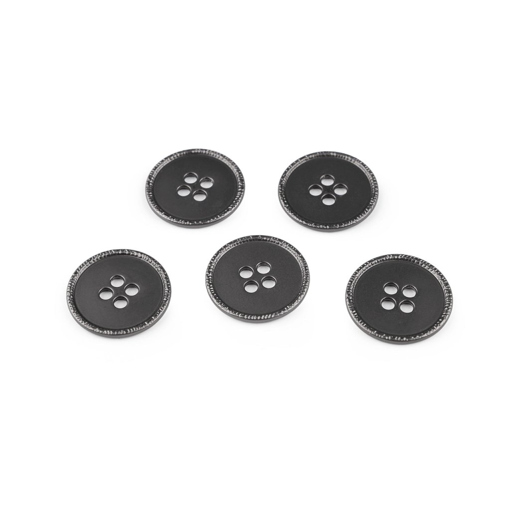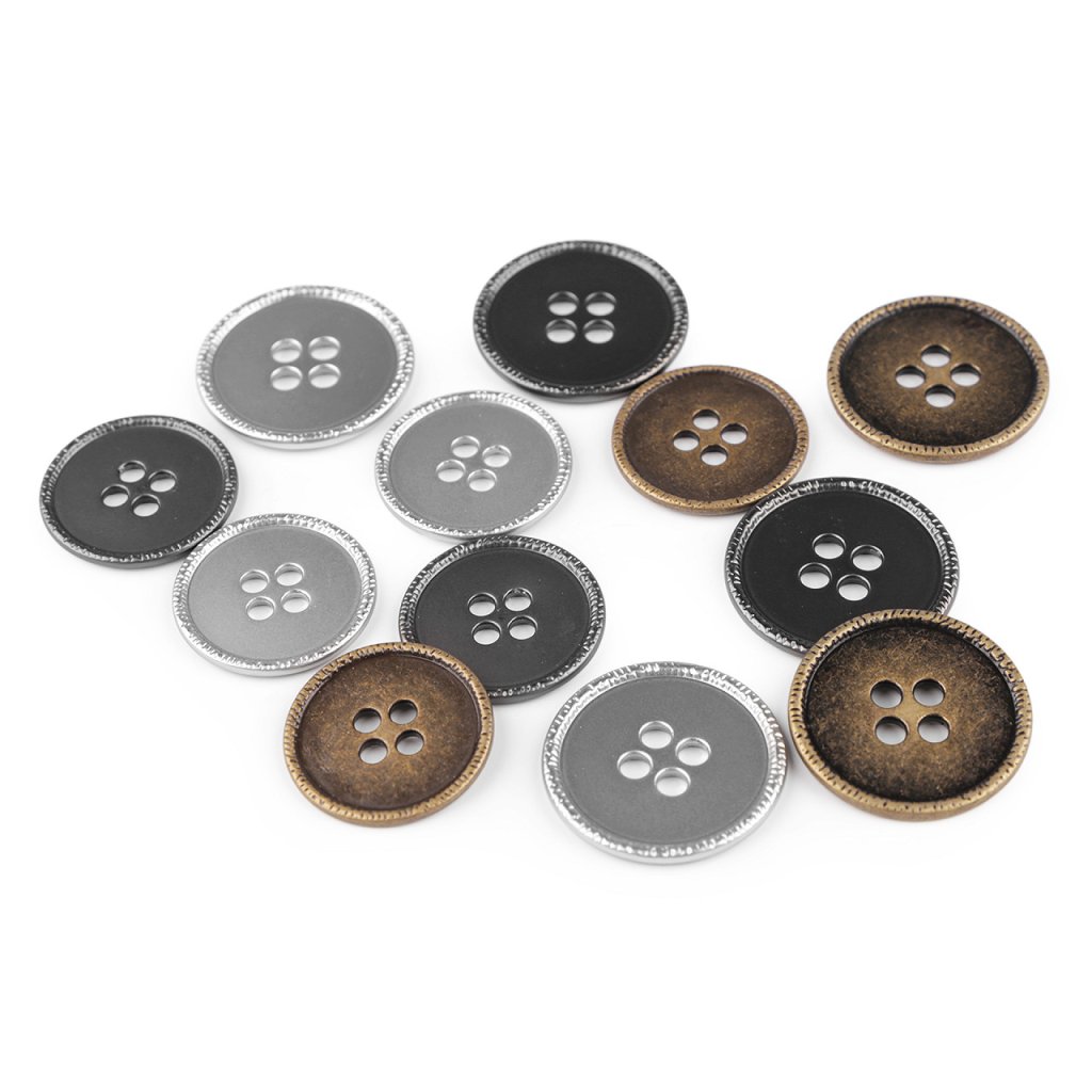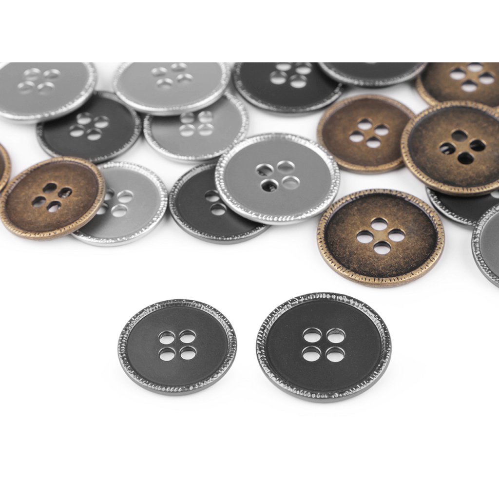 Kovové knoflíky oceníte nejen kvůli designu, ale i kvalitě. Z lícové strany jsou hladké, s matným leskem, okraje jsou vystouplé s reliéfem. Knoflíky vyniknou na bundách, kabátech i modernějších sakách.