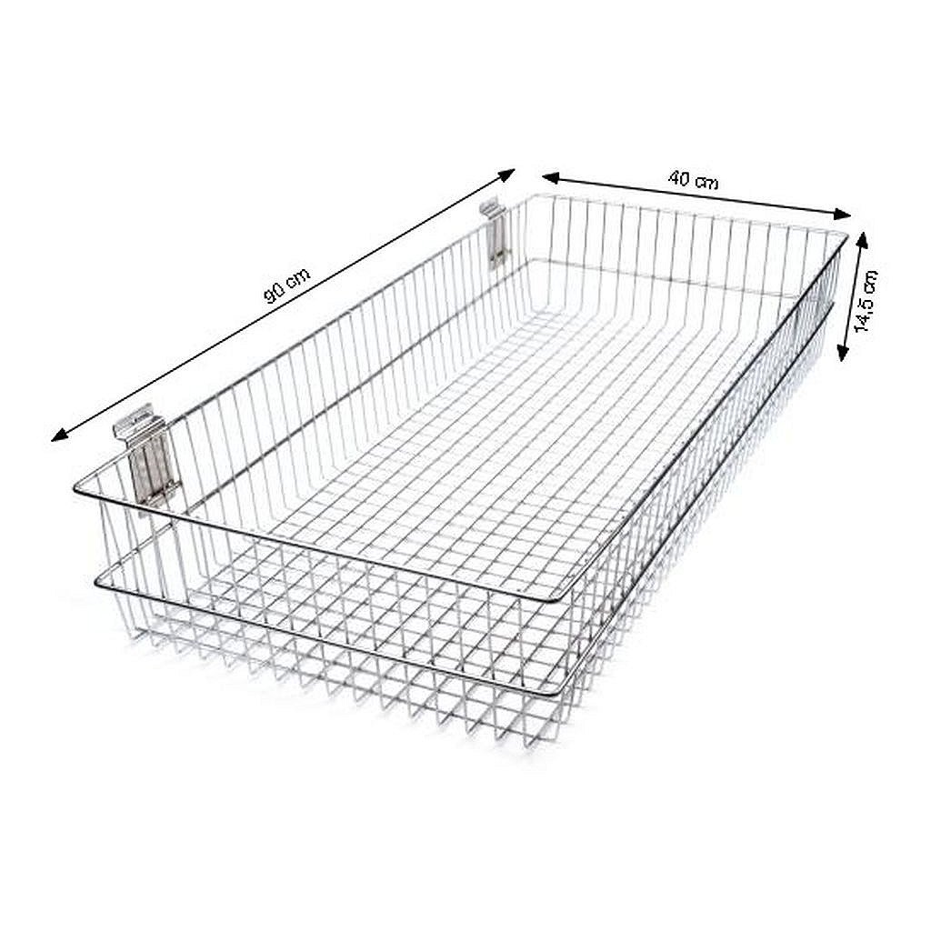 Rozměry koše jsou 40x90 cm, je vhodný k zavěšení na panely s drážkou.