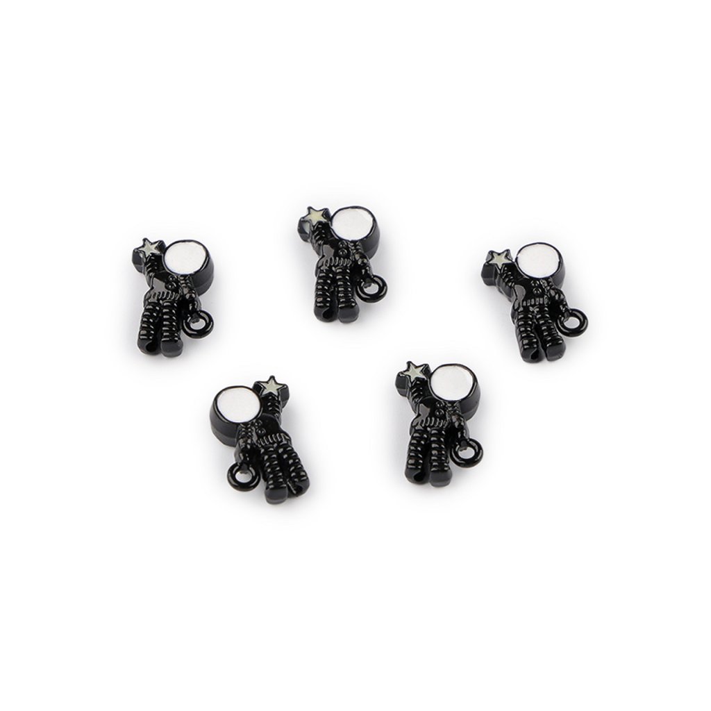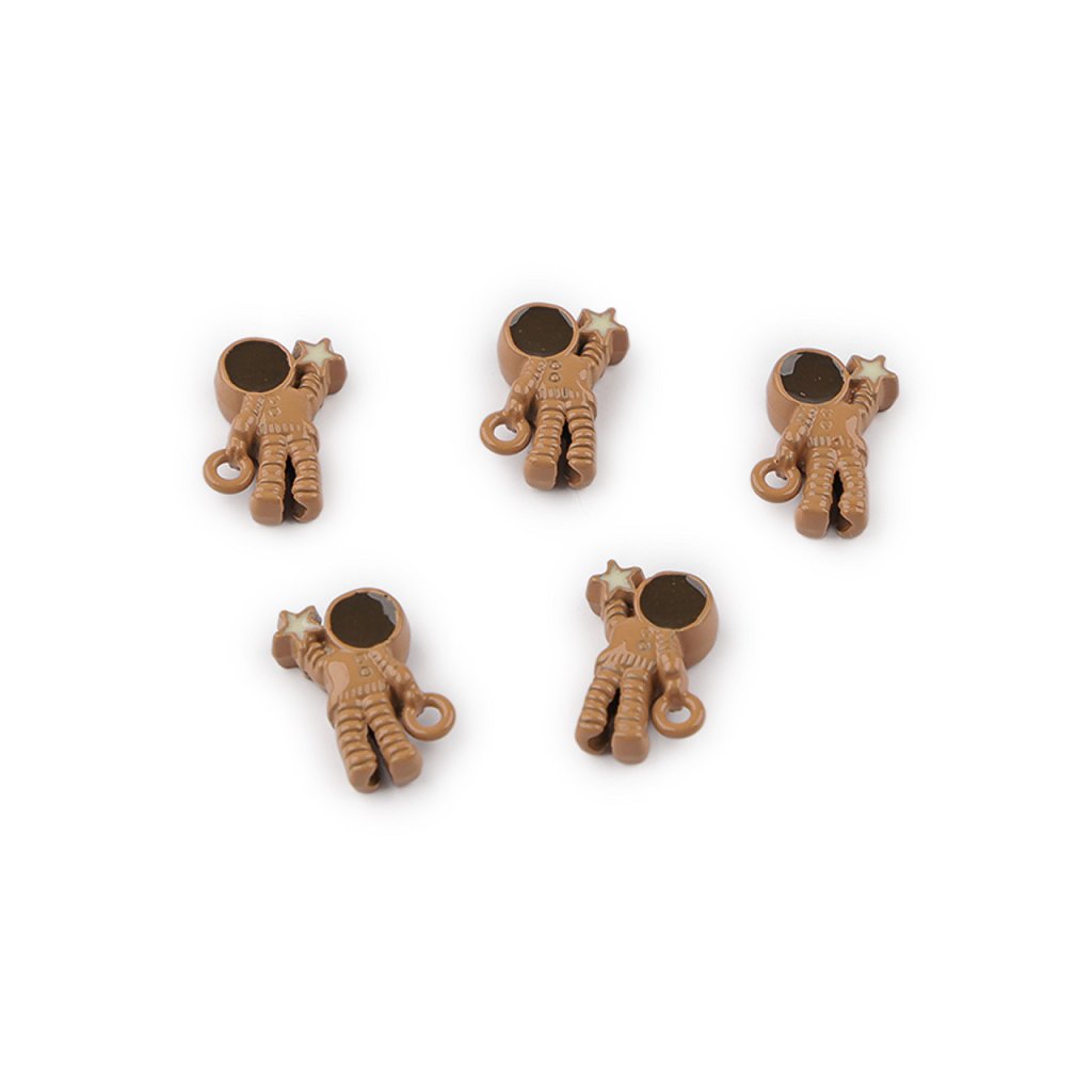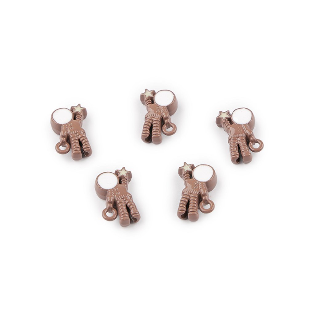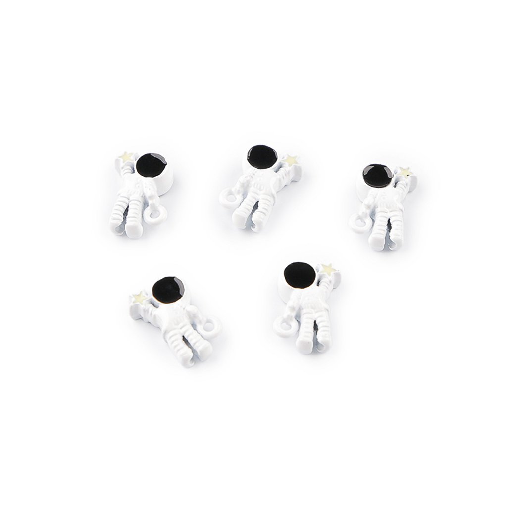 Kovový přívěsek kosmonauta je perfektně zpracovaný, díky povrchovému laku se jemně leskne. Jeden průvlek má u ruky, ale celým jeho středem těla - od hlavy k patě - vede další průvlek, díky kterému se dá kosmonaut navléknout jako klasický korálek. Při navlékání se budou kosmonauti řadit nad sebe. Perfektně dozdobí šperky, ale i dárek, přání apod. Budou z nich krásné náušnice, oživí náramek i náhrdelník.