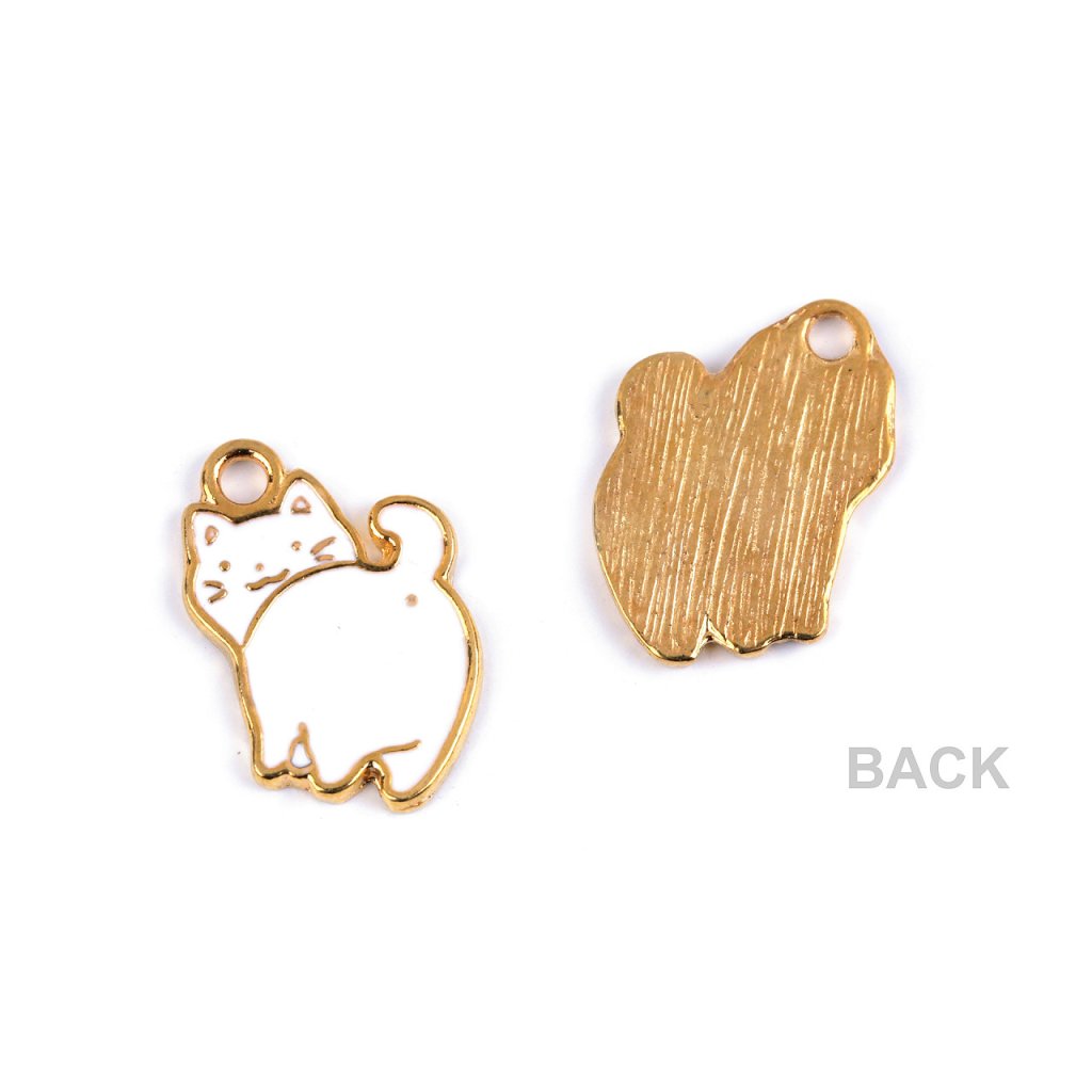 Přívěsek kovové kočky se smaltem je velice roztomilý. Má mnohostranné využití, je jednostranný, z nemagnetického kovu.
