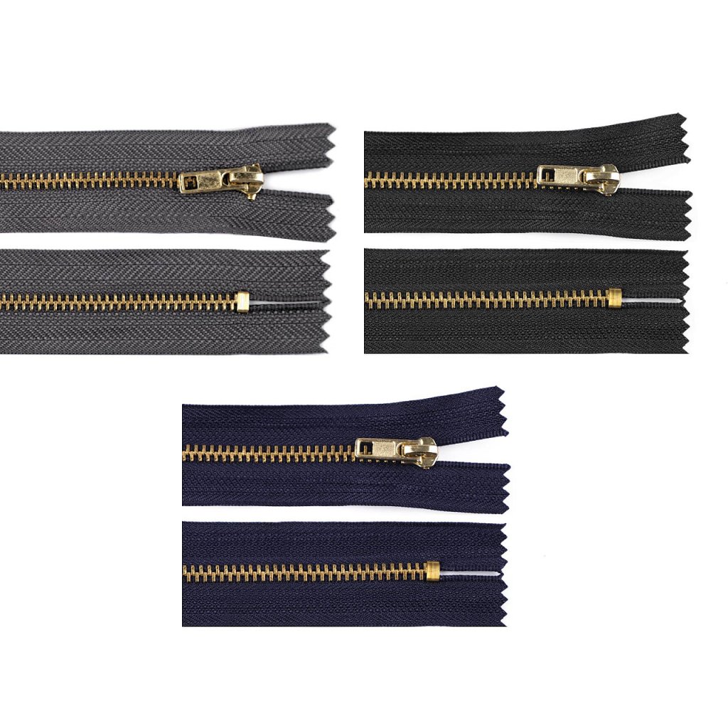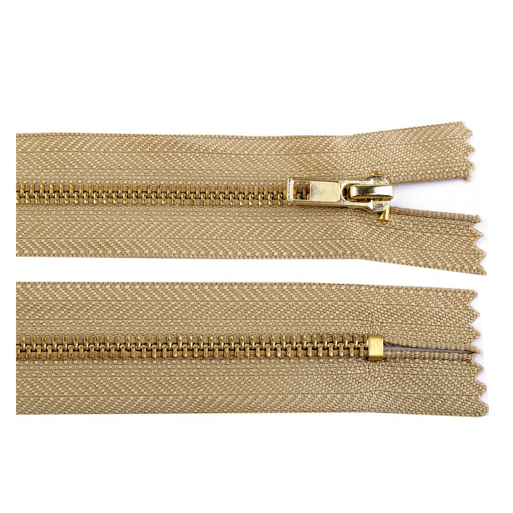 Kovový zip No 3 délka 18 cm kalhotový s mosaznými zoubky