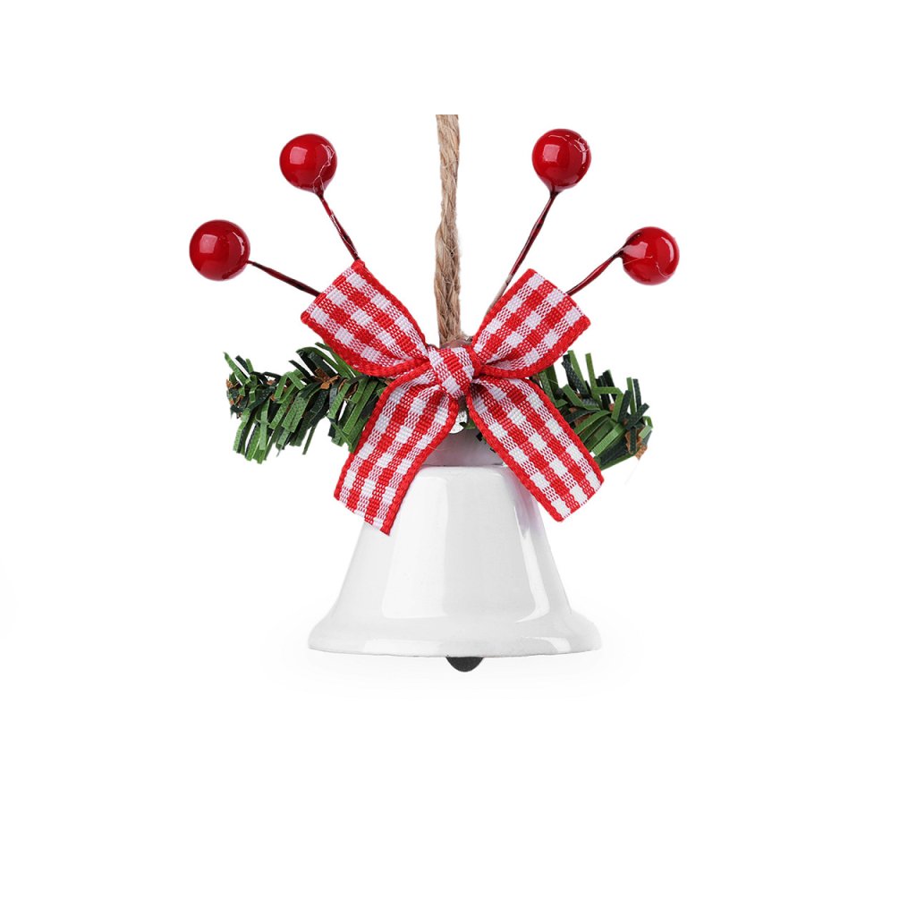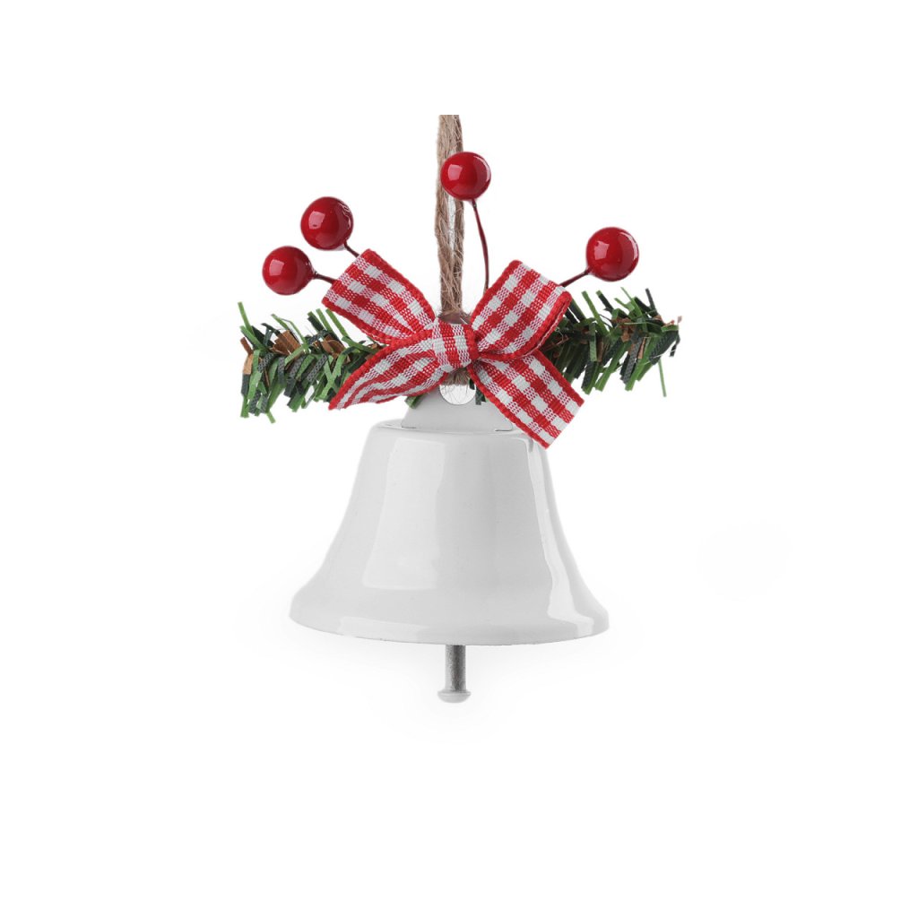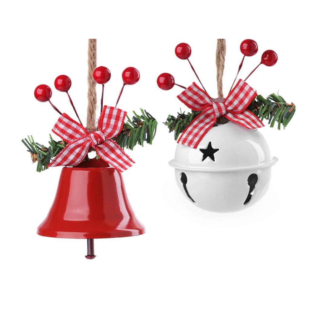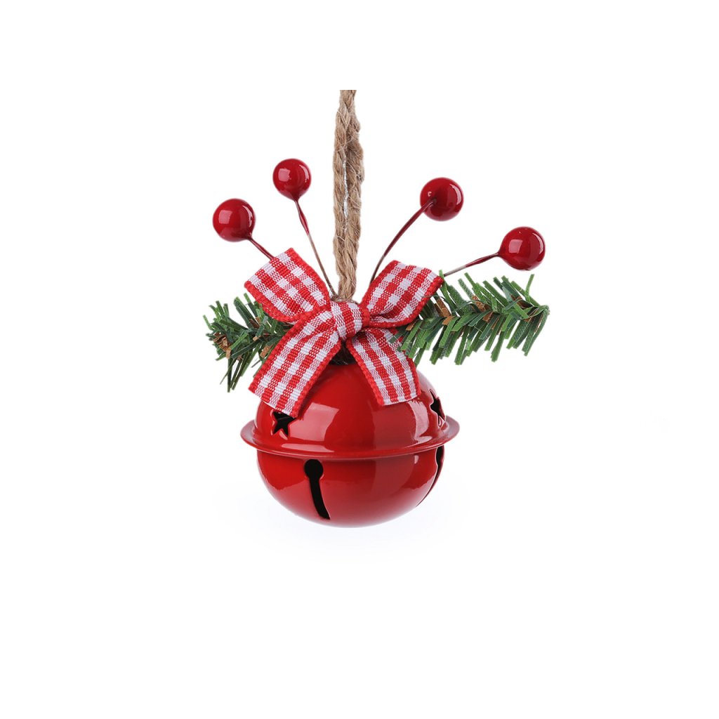 Kovové zvonečky a rolničky využijete jako vánoční závěsnou dekoraci. Nahoře jsou ozdobené větvičkou, mašličkou a bobulemi. Mají poutko k zavěšení, můžete je pověsit na stromeček, větvičku ve váze nebo na dekorační girlandy a věnce.