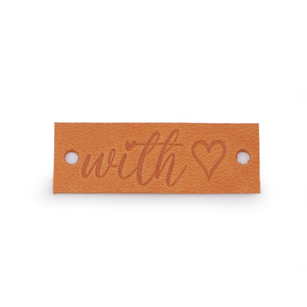 Kožená cedulka / štítek Handmade, With love 16x44 mm