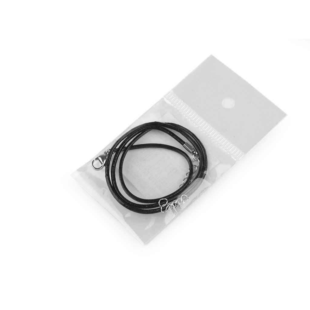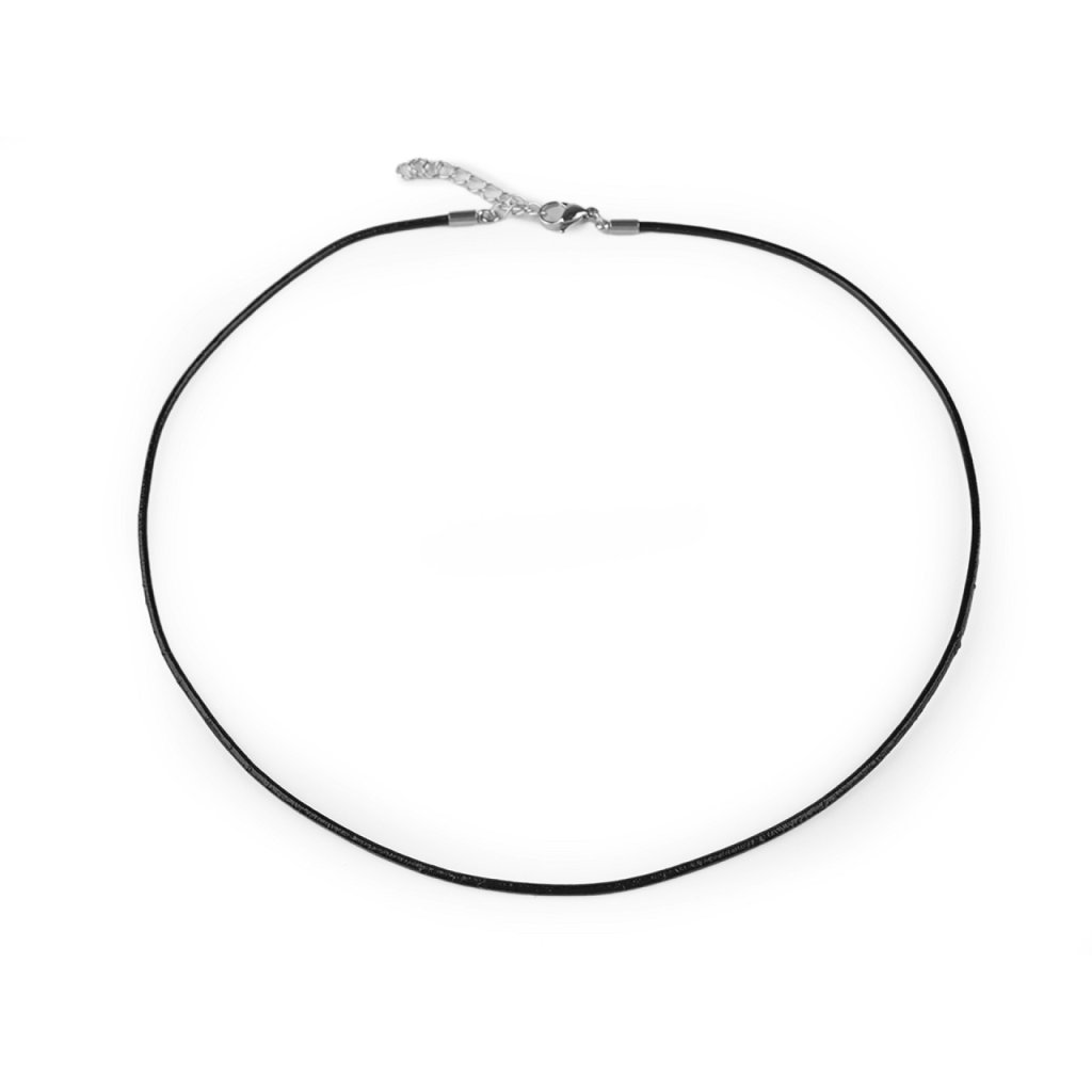 Kulatá šňůrka na krk z lesklé kůže, má připevněné kompletní zapínání z nerezové oceli na karabinku. Stačí pouze navléct přívěsek a vyrazit. Samozřejmostí tohoto hotového výrobku je prodlužovací řetízek. Délka 46 cm + 5 cm adjustační řetízek. Karabinka 7 x 11 mm, šňůra průměr 2 mm.