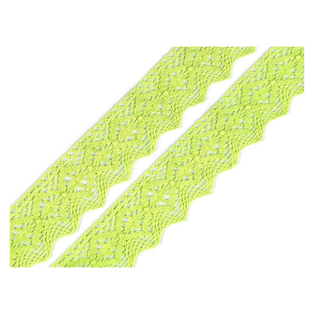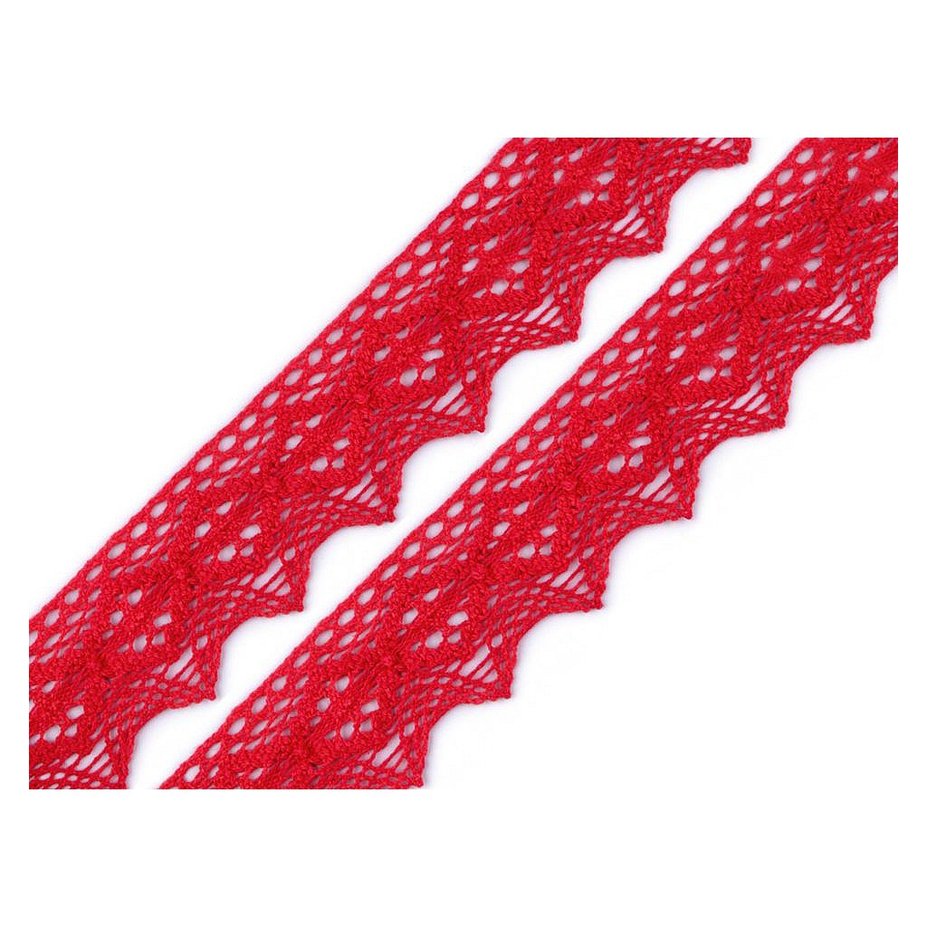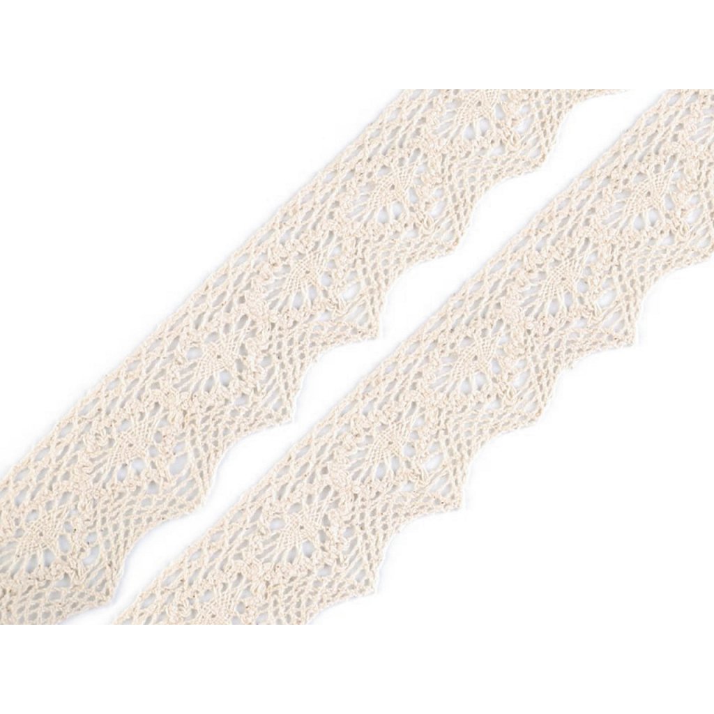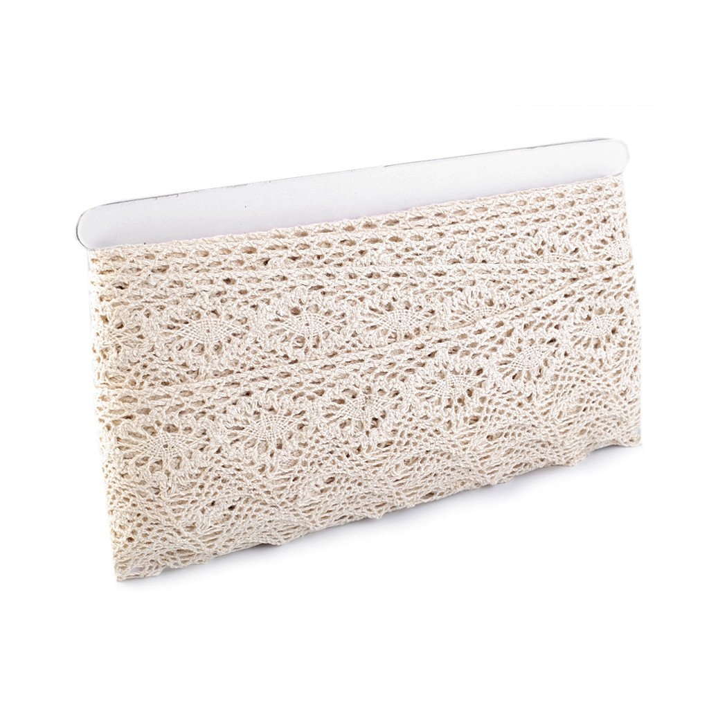 Paličkovaná krajka se zajímavým vzorem je vyrobená z bavlny. Doporučujeme ji žehlit přes tkaninu.