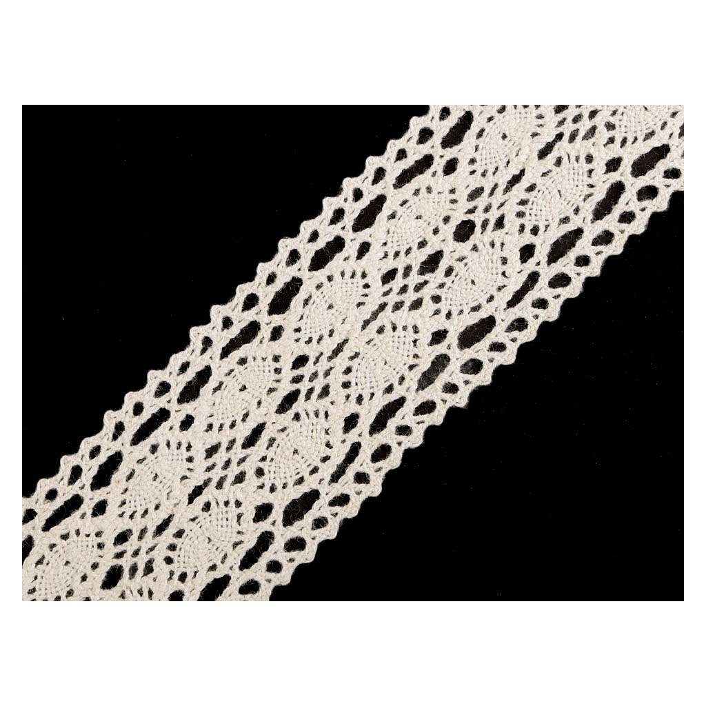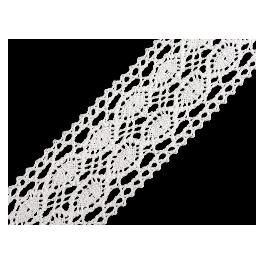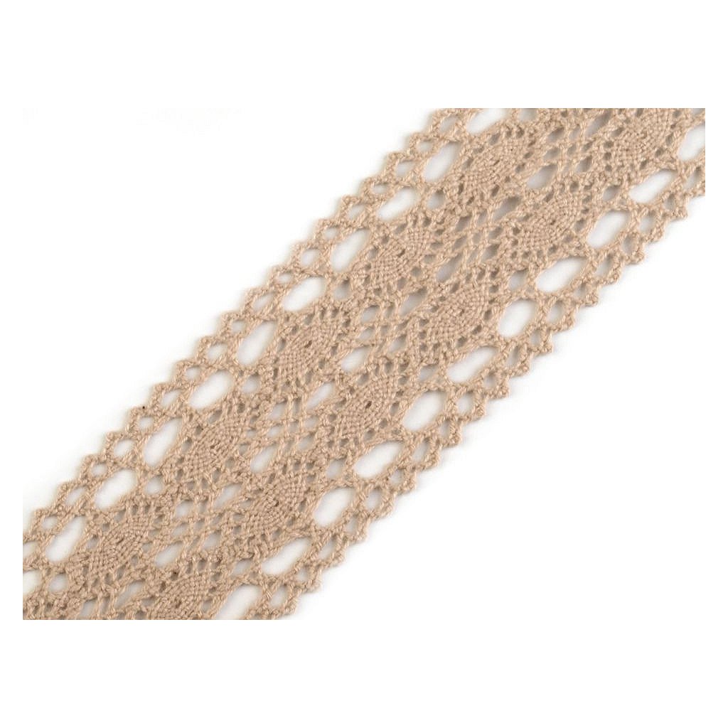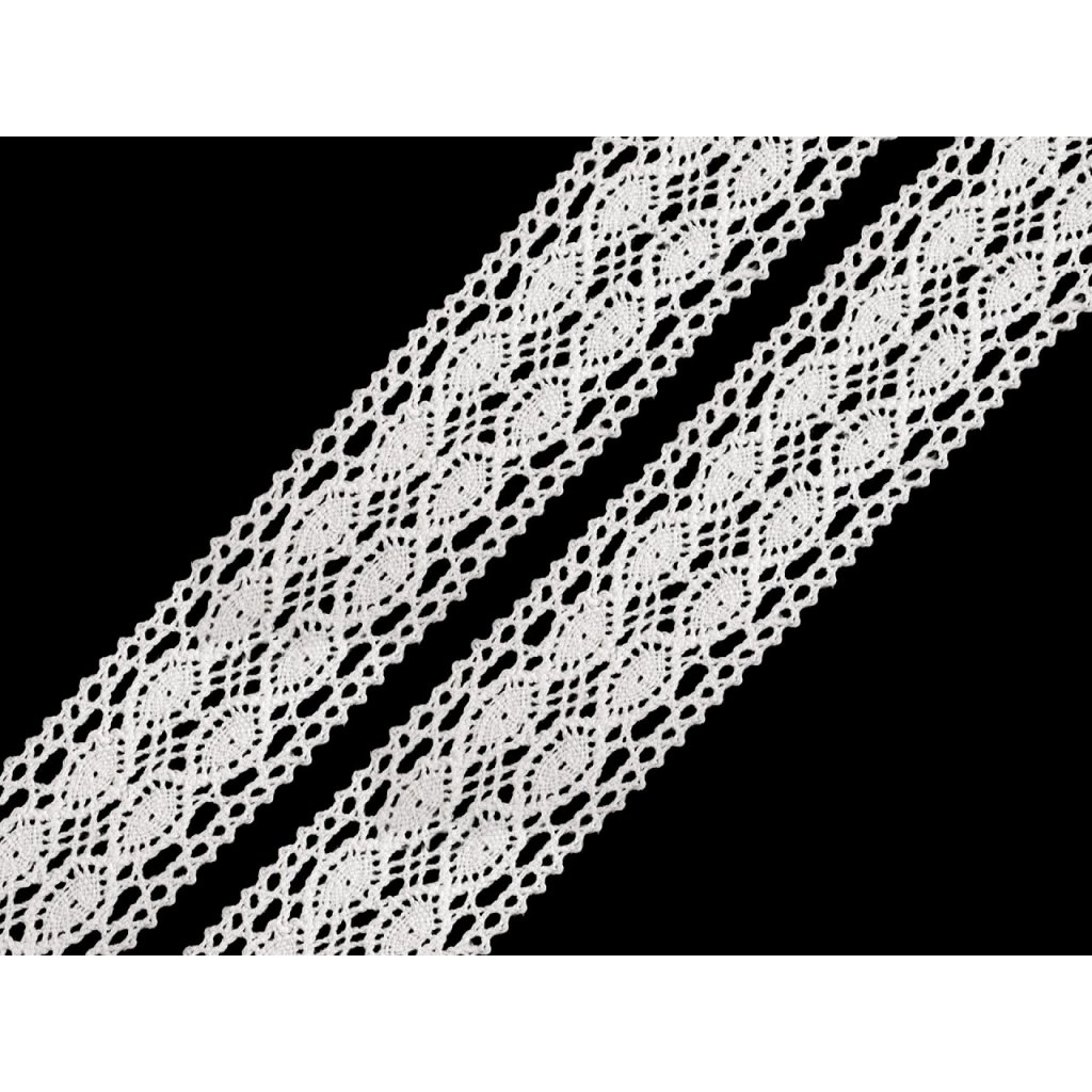 Bavlněná paličkovaná krajka se zajímavým vzorem má okraje zakončené očky. Doporučujeme ji žehlit přes tkaninu.