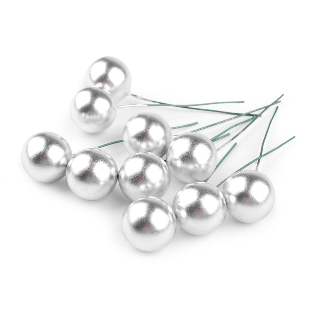 Dekorační kuličky vyniknou zakomponované ve vánočních vazbách, věncích, truhlících a různých dekoracích. Jsou připevněné k ohebnému floristickému drátku.