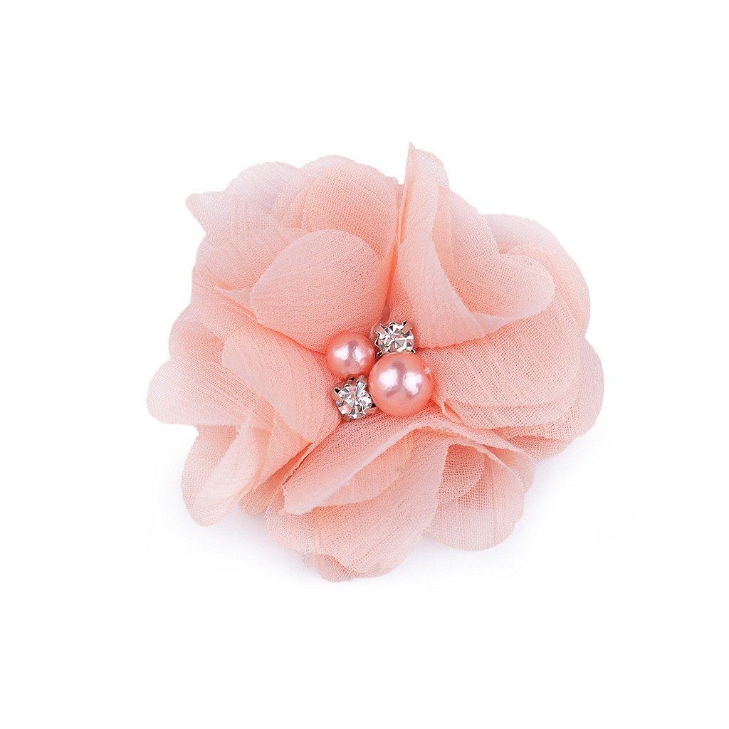 Použití: Květ můžete našít jako ozdobu na společenské šaty, halenky, trička nebo svetry. Je vhodný i na zdobení klobouků, čepic a čelenek do vlasů. Můžete ho také pomocí lepidla přilepit na brožový můstek a vytvořit zajímavý šperk.