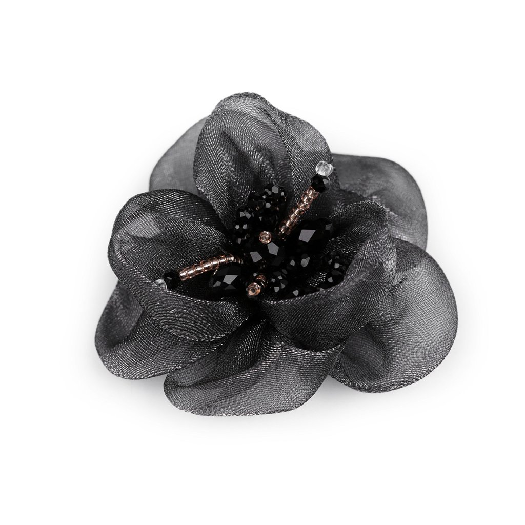 Použití: Květ můžete našít jako ozdobu na společenské šaty, halenky, trička nebo svetry. Je vhodný i na zdobení klobouků, čepic a čelenek do vlasů. Můžete ho také pomocí lepidla přilepit na brožový můstek a vytvořit zajímavý šperk.