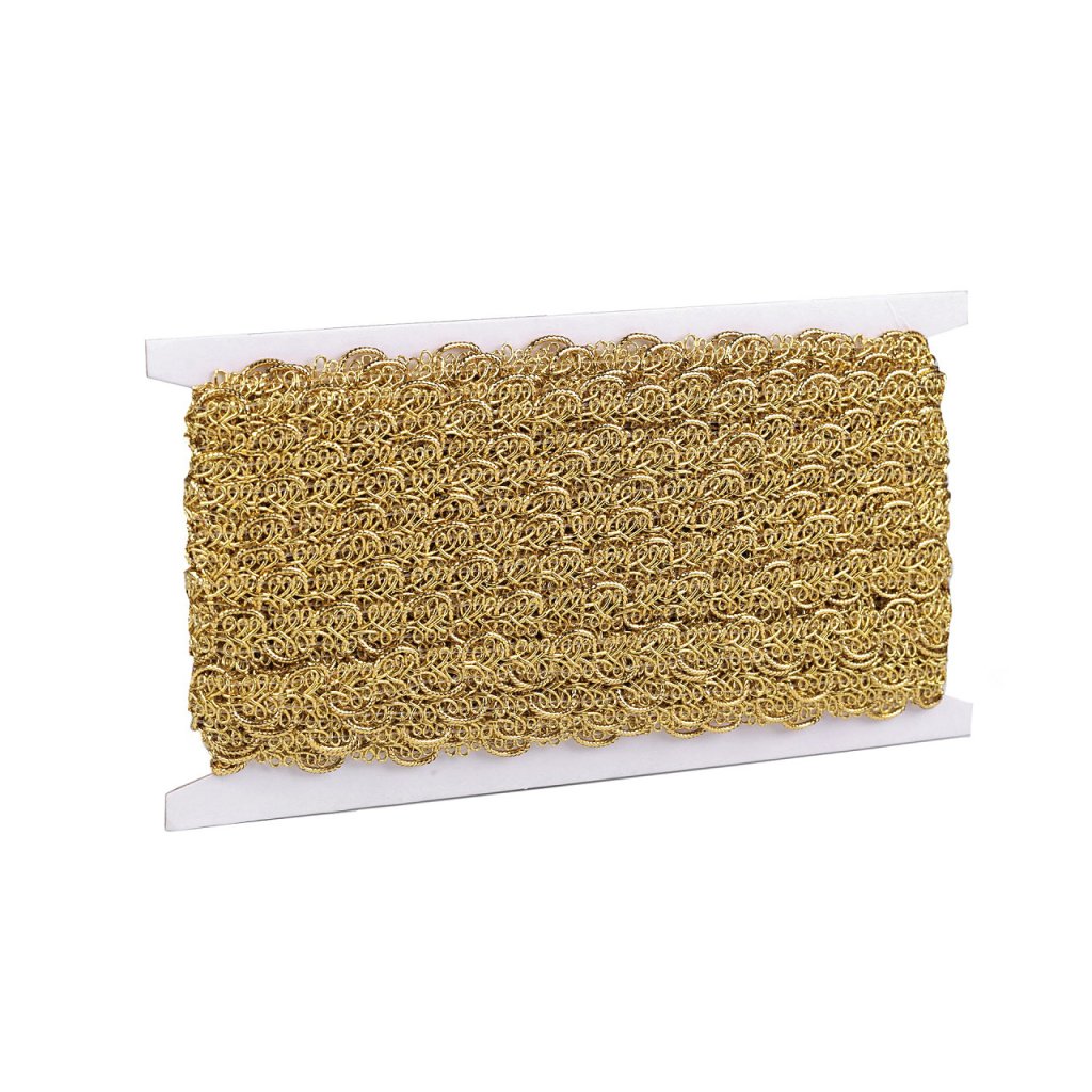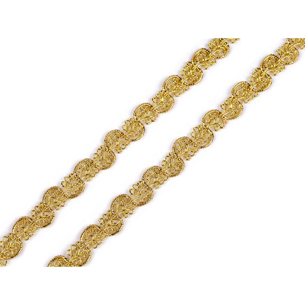 Propletený leonský prýmek působí díky třpytivému lurexu velmi slavnostně. Je pevný.