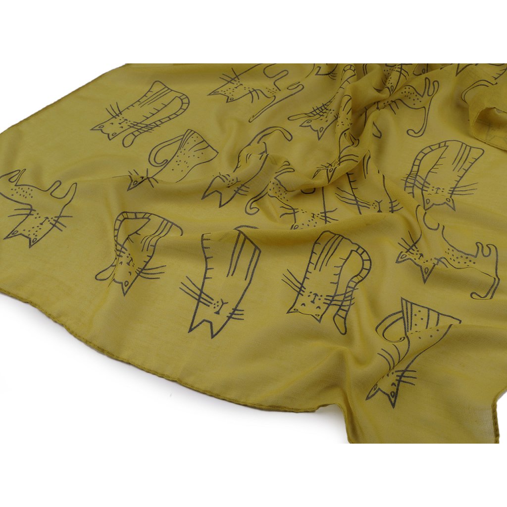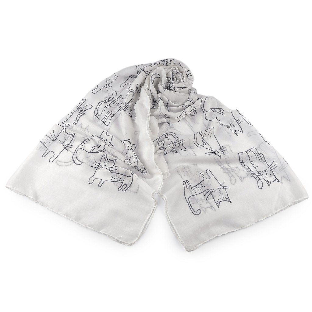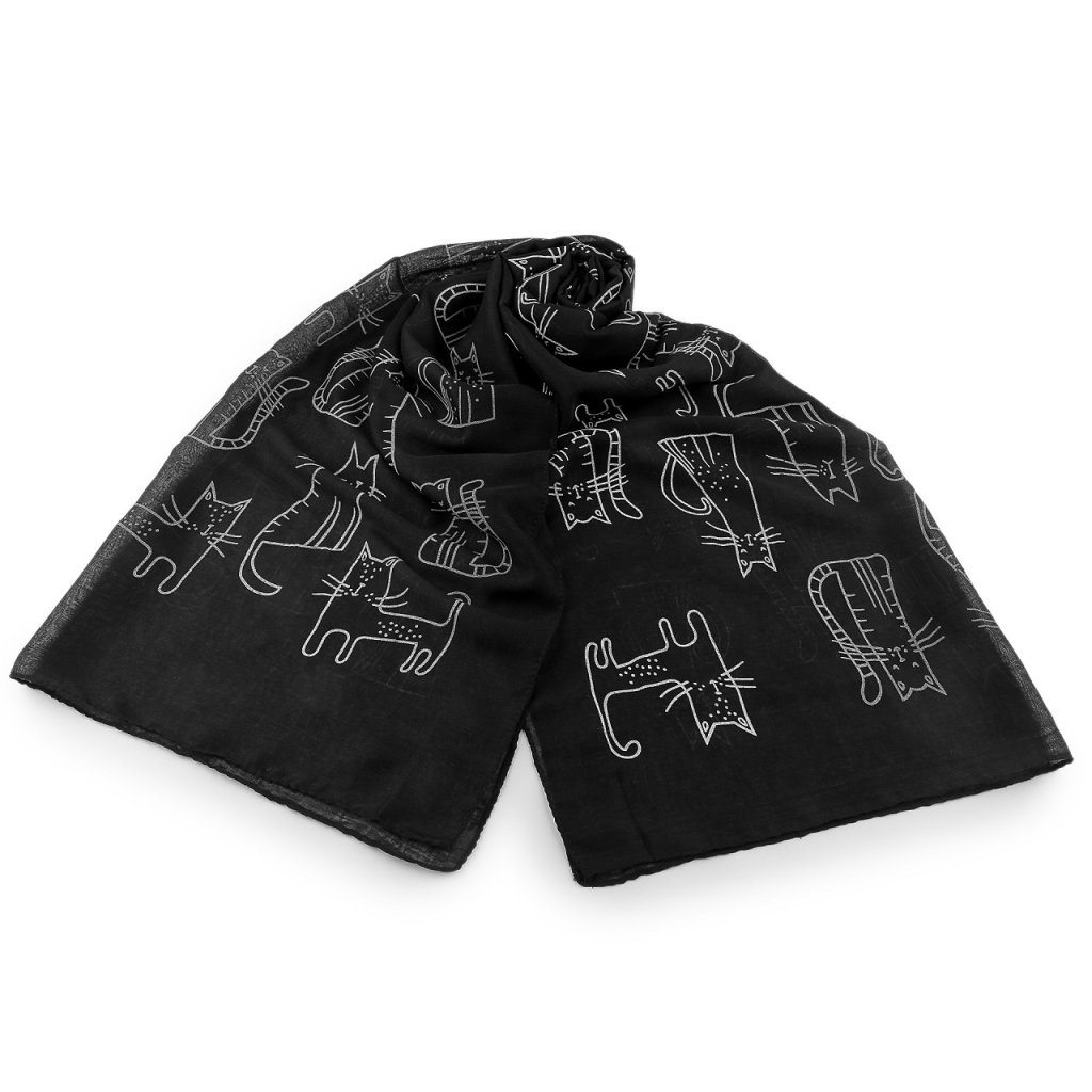 Šátek s motivem koček je vzdušný a lehounký, velice příjemný na dotek. Je jemně průsvitný, doladí váš outfit, ať už si vezmete sako, halenku, svetřík či šaty. Design koček přidává hravý a zábavný prvek, který rozjasní každý váš den.