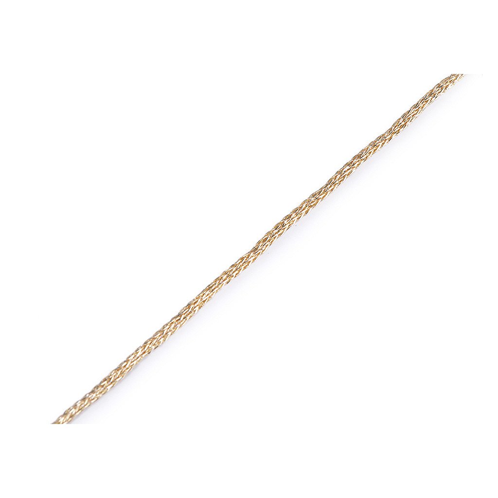 Tenká splétaná šňůrka se díky lurexovému vláknu elegantně třpytí. Skvěle s ní zabalíte a ozdobíte dárky, využijete ji k různým dekoračním účelům, nebo ji můžete použít jako navlékací materiál při výrobě náhrdelníků, náramků, apod.
