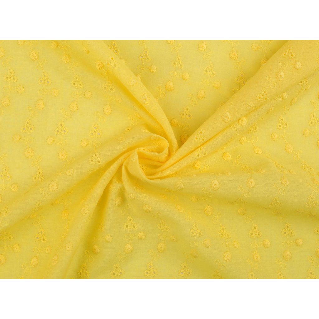 Bavlněnou madeiru zdobí dírkovaná výšivka s květy. Je lehká a vzdušná, vhodná do teplého letního počasí. Využijete ji na šití šatů, halenek, sukní, tunik, dívčích šatiček apod. Je vhodná i na ušití dekorací - polštářů, ubrusů, záclonek, závěsů apod.