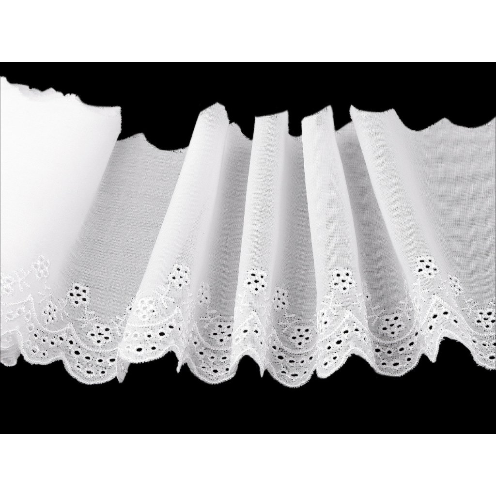 Madeiru s jemnou květinovou dírkovanou výšivkou můžete našít na oděvy, kde vytvoří originální a atraktivní detaily jako jsou lemy rukávů, sukní nebo výstřihů. Dále je vhodná na ozdobení ubrusů, závěsů, záclon, dekoračních polštářů nebo ložního prádla.