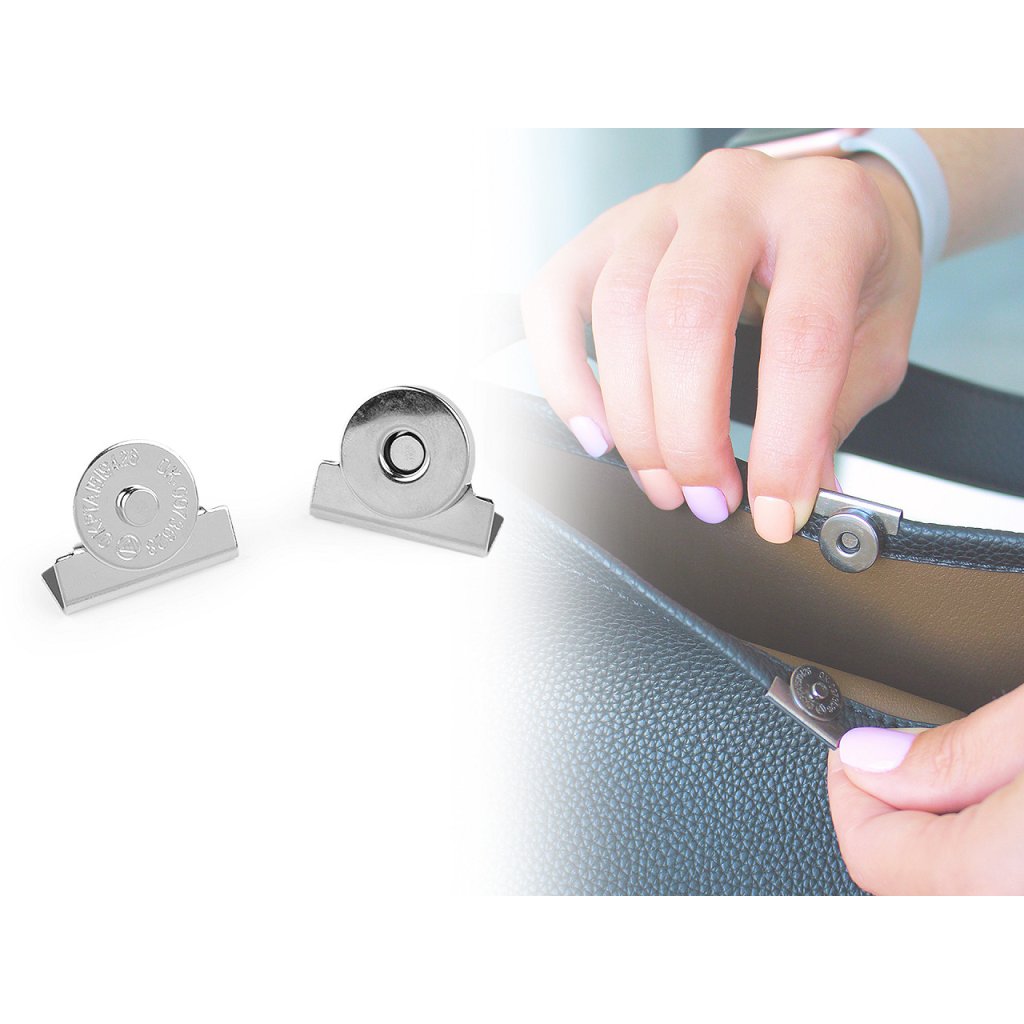 Magnetické zapínání se skládá ze dvou dílů, které se protilehle připevní na materiál a přitisknou se k sobě. Můžete ho použít na psaníčka, kabelky, městské batůžky nebo peněženky.