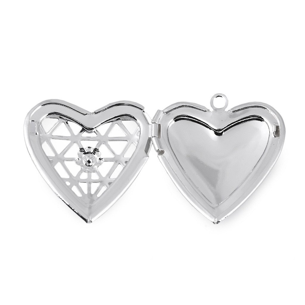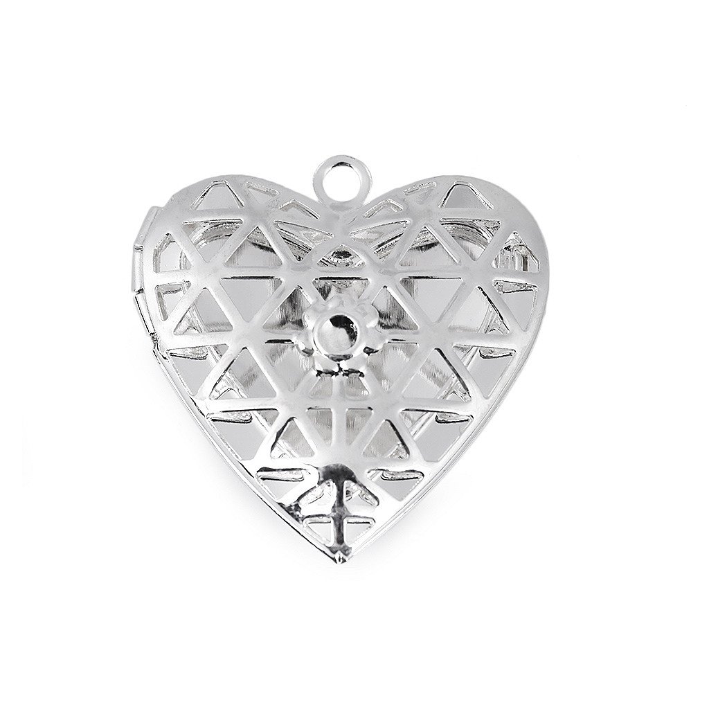 Máte rádi medailónky, protože vám umožňují nosit fotografie vašich blízkých neustále u sebe? Pak si pořiďte tento medailón ve tvaru srdce o velikosti 26 x 26 mm. Můžete si do něj umístit jeden obrázek, který uvidíte přes mřížkování. Medailóny jsou vyrobeny z kvalitního kovu a jsou k dostání ve dvou barvách – světle stříbrná a platinová.