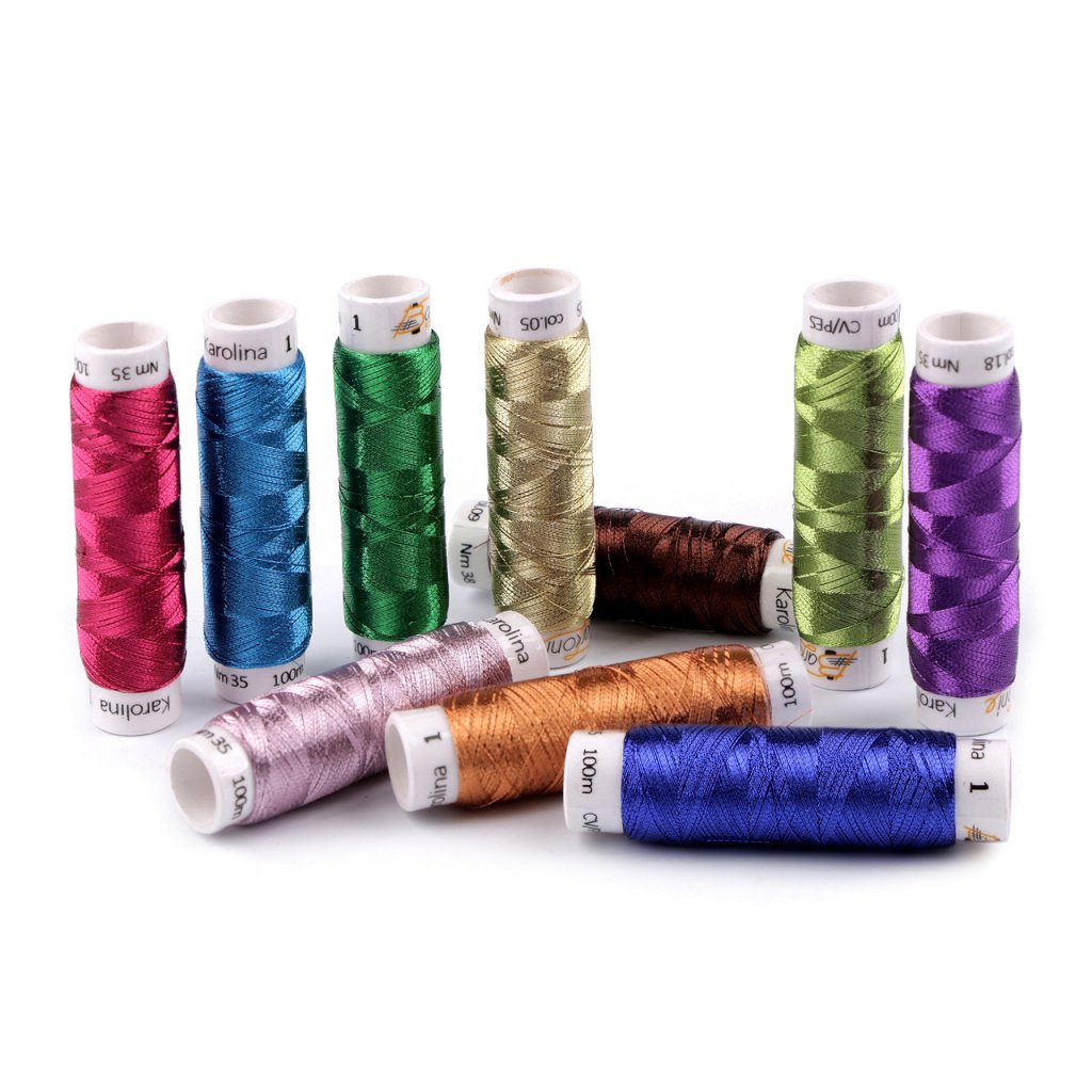 Metalickou nit Karolinu tvoří viskózové vlákno, které "omotává" metalický polyesterový proužek. Díky speciálnímu prostředku, kterým je ošetřena, se u nitě zabraňuje nežádoucímu rozmotávání jednotlivých pramenů po odstřižení.