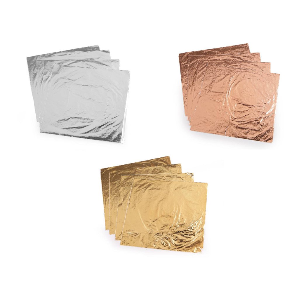 Metalické plátky jsou určené ke zdobení pevných ploch předmětů. Díky nim se budou ozdobené předměty efektně lesknout. Můžete je použít na tvorbu originálních dekorací, jako jsou rámy obrazů nebo zrcadel. Malíři je s oblibou využívají jako zářivý efekt do svých obrazů. 1 sada obsahuje 25 ks plátků o rozměrech 14 x 14 cm, vašim projektům dodají unikátní vzhled. Navzájem jsou oddělené jemnými papíry. Jsou ideální pro aplikaci na různé povrchy, ať už jde o dřevo, sklo, plast nebo malířské plátno. Plátky jsou tenké a snadno se s nimi manipuluje, jsou vhodné i pro detailní a precizní práci.