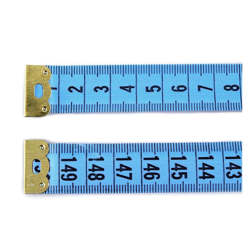 Krejčovský metr v délce 150 cm má po obou stranách uvedeny jednotky v cm. Tam, kde je z lícní strany např. 1 cm, je z rubu 150 cm. Metry jsou baleny v plastových krabičkách, které jsou uloženy do krabice po 12 kusech. Metry dodáváme v barevných mixech, které mohou obsahovat tyto barvy: bílá, žlutá, zelená, modrá, růžová. Mix je náhodný, proto se mohou v krabici objevit stejně barevné metry.