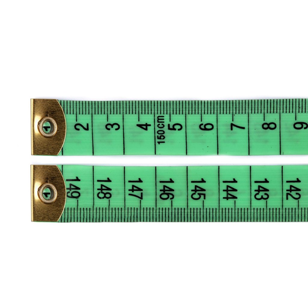 Krejčovský metr slouží pro měření při šití. Míra v cm je z obou stran. Oproti 150 cm je 0 cm. Oproti 149 cm je 1 cm, atd.