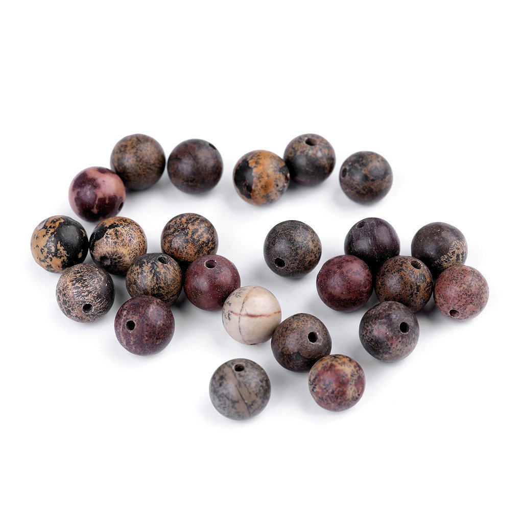 Minerální korálky z tmavého jaspisu jsou oblíbené především šperkaři pro své zemité barvy a kresbu. Svou velikostí jsou ideální na výrobu Buddhových náramků. Jsou oblíbené na techniku drátování, v kombinaci s drahými kovy, ale i s obyčejnými drátky. Skvěle vypadají i na jednoduchých návlekových šňůrách, které zajímavě ozvláštní.