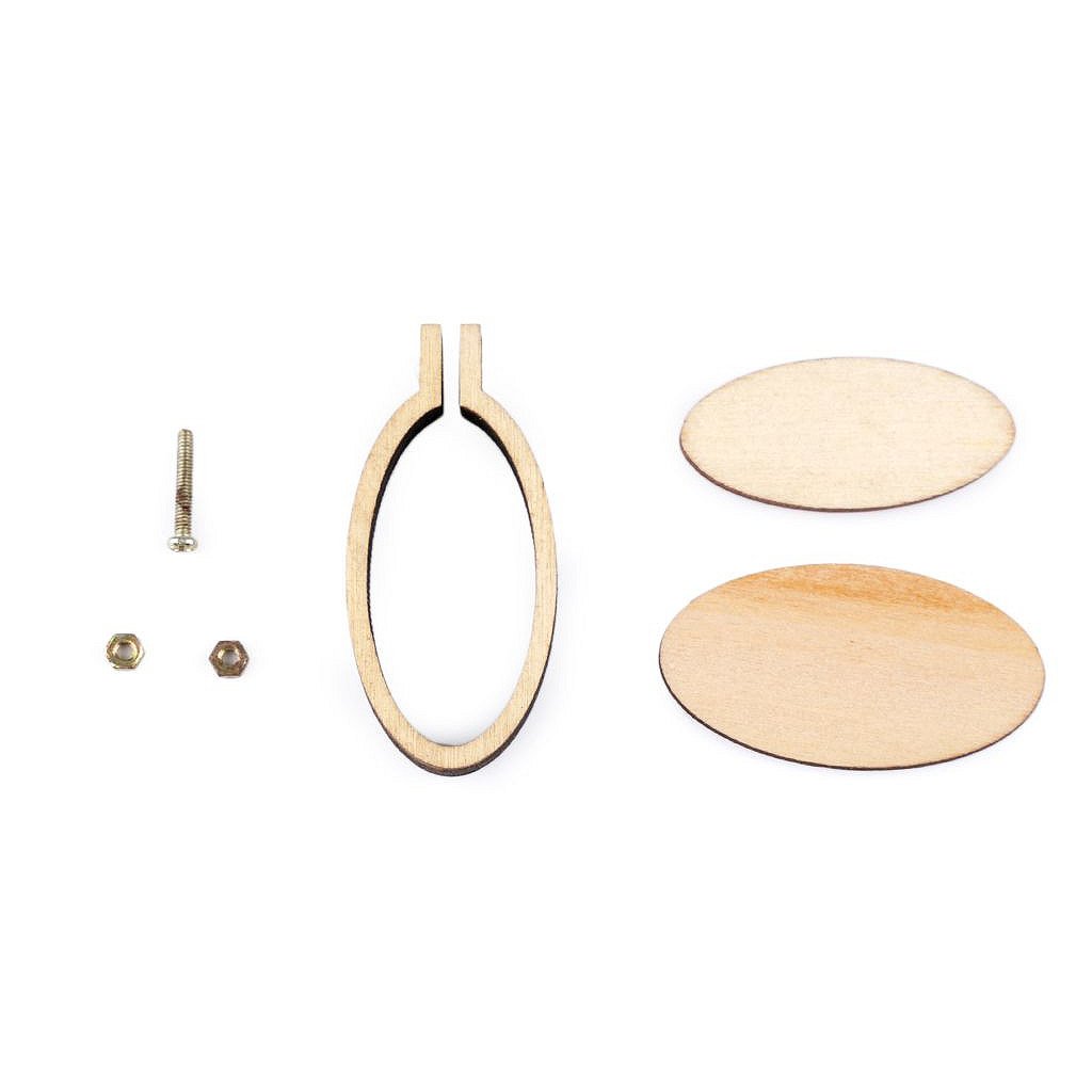 Malý dřevěný rámeček je vhodný na tvoření drobných vyšívaných obrázků. Hotové obrázky v rámečku můžete nosit jako přívěsek na krku nebo s nimi můžete ozdobit dárky apod. Vyšitý obrázek nalepte na menší destičku, větší destičku nalepte ze zadní strany rámečku a vložte do rámečku menší destičku s obrázkem. Rámeček v horní části utáhněte přiloženým šroubkem a maticemi.