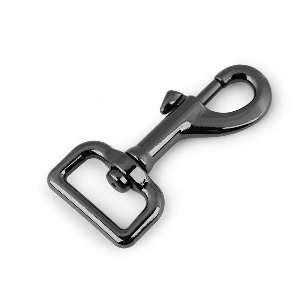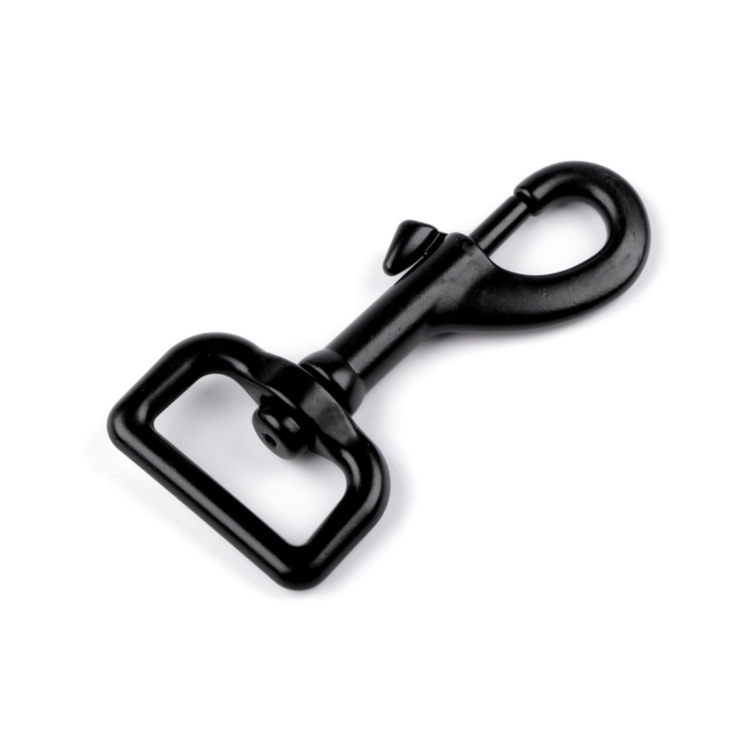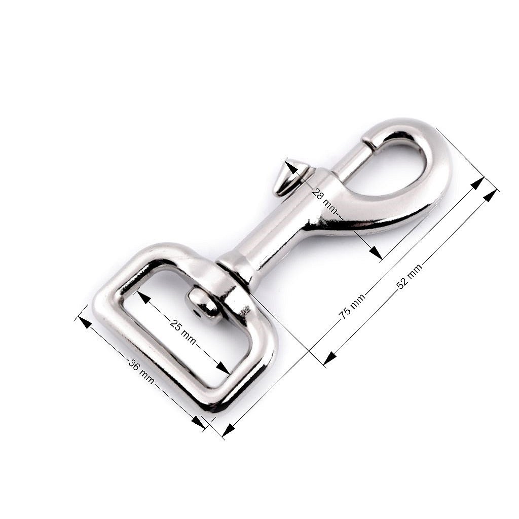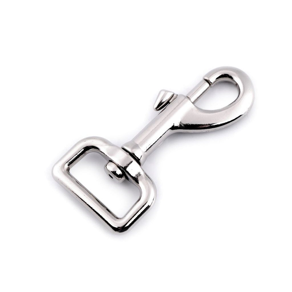 Mohutnou kovovou karabinu využijete hlavně na výrobu vodítek pro velké rasy psů. Dále ji můžete použít na kabelky, sportovní tašky, kufry apod. Je otočná.