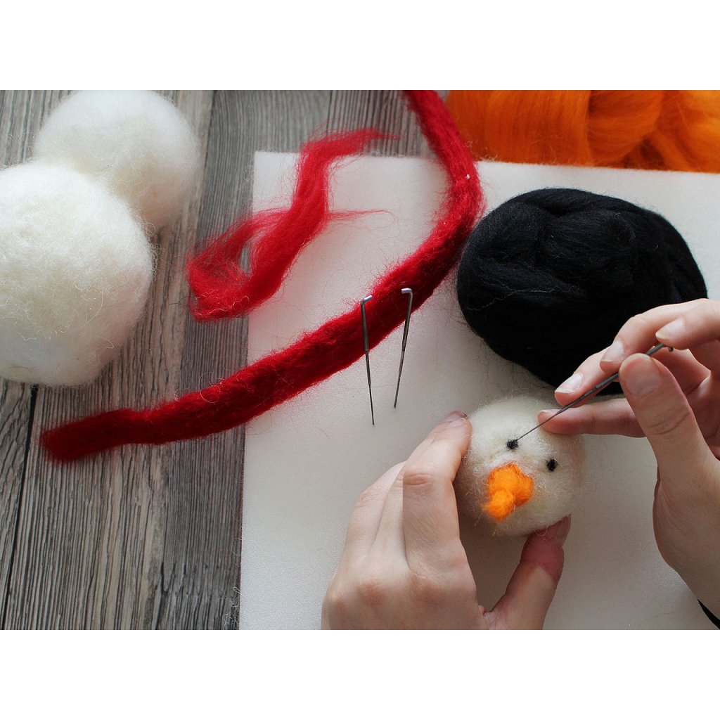 Vezměte smotek rouna a prsty jej vytvarujte do přibližně požadovaného tvaru. Plstící jehlou začněte do rouna píchat postupně a rovnoměrně ze všech stran. Plstící jehla má po stranách drobné drážky, do nichž se vlákna vlny zachytávají a tím, že vlnu propíchneme, zachycená vlákna se spletou.