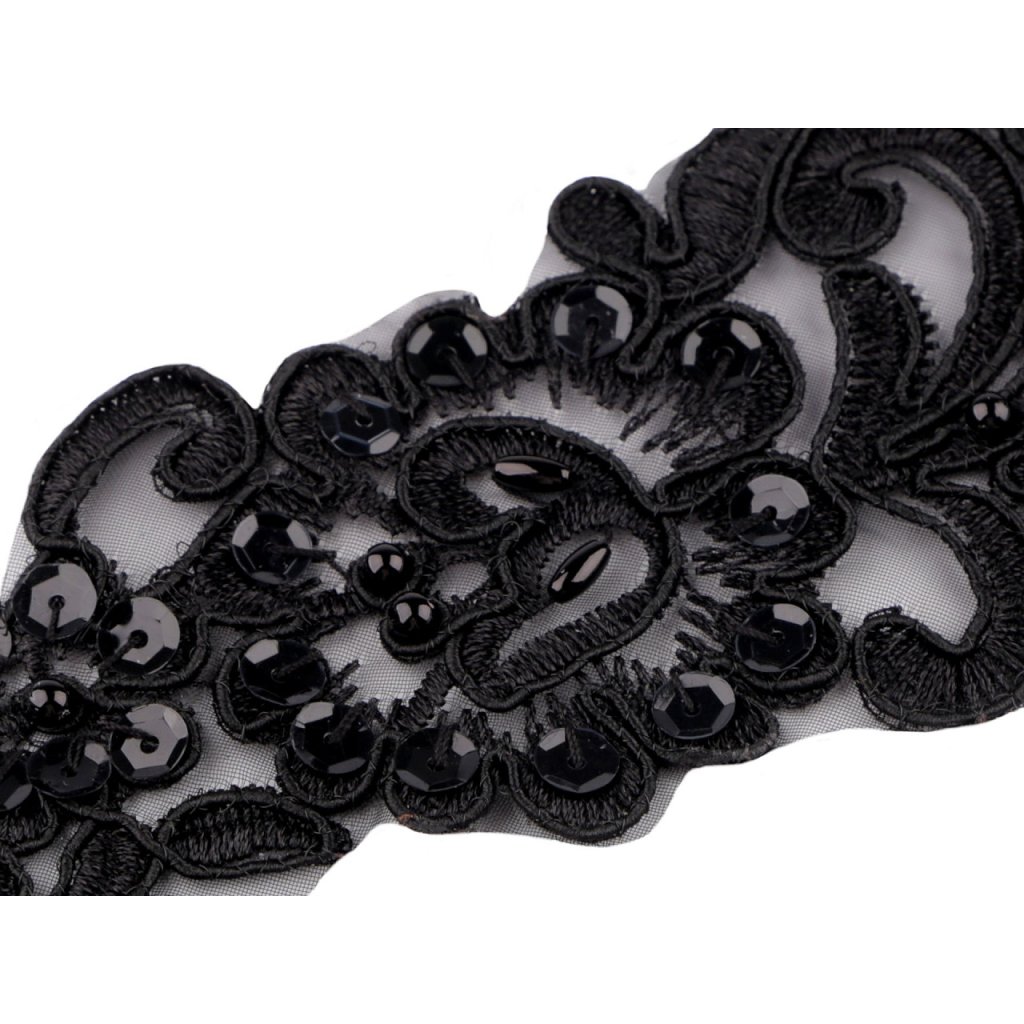 Monofilová aplikace / vsadka s perličkami a flitry 8x24 cm