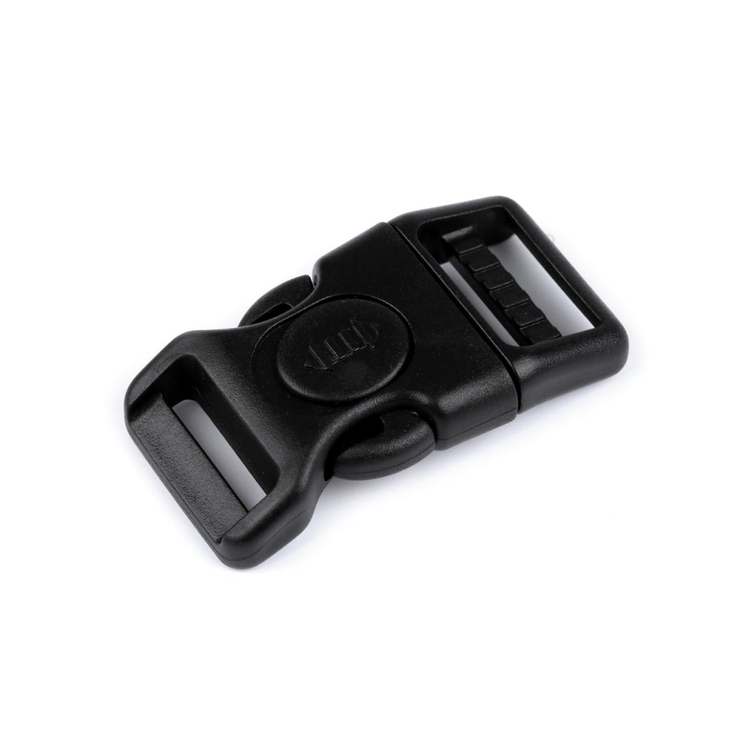 Plastová spona neboli trojzubec je odolná vůči mrazům a má pojistku proti samovolnému odepnutí. Díky mírně prohnutému tvaru skvěle poslouží na výrobu outdoorových náramků spletených ze šňůr. Využijete ji ale také k výrobě ledvinkových opasků, batohů, kabelek apod.