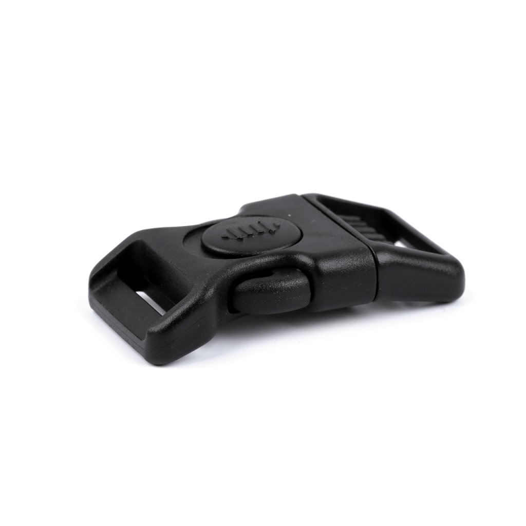 Plastová spona neboli trojzubec je odolná vůči mrazům a má pojistku proti samovolnému odepnutí. Díky mírně prohnutému tvaru skvěle poslouží na výrobu outdoorových náramků spletených ze šňůr. Využijete ji ale také k výrobě ledvinkových opasků, batohů, kabelek apod.