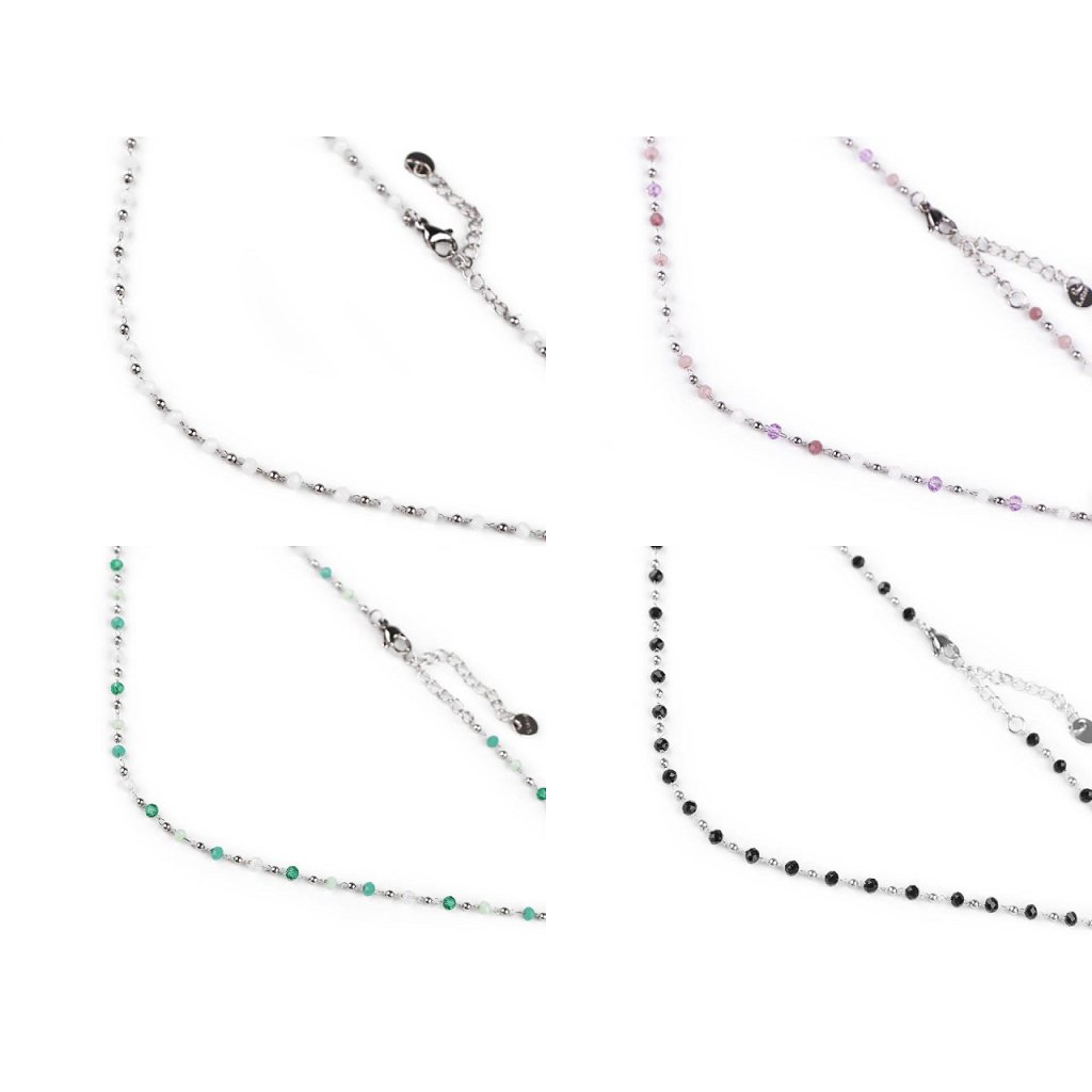 Jemný ketlovaný náhrdelník je vyrobený z kvalitní nerezové oceli. Je ozdobený broušenými a kovovými korálky. Broušené korálky se jemně třpytí, náhrdelník se hodí k slavnostním šatům i na běžné nošení, má velice všestranné využití.
