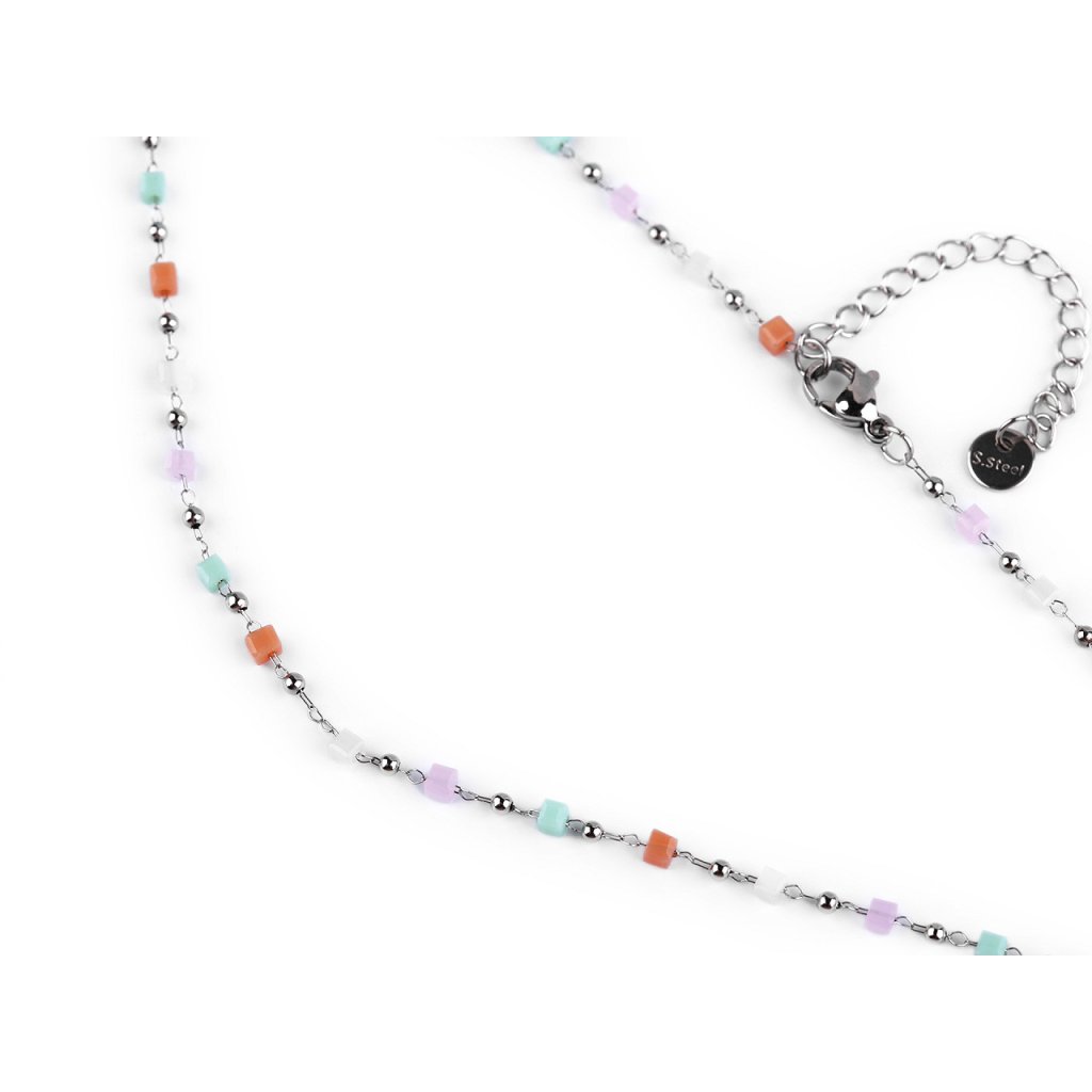 Náhrdelník z nerezové oceli se skleněnými korálky