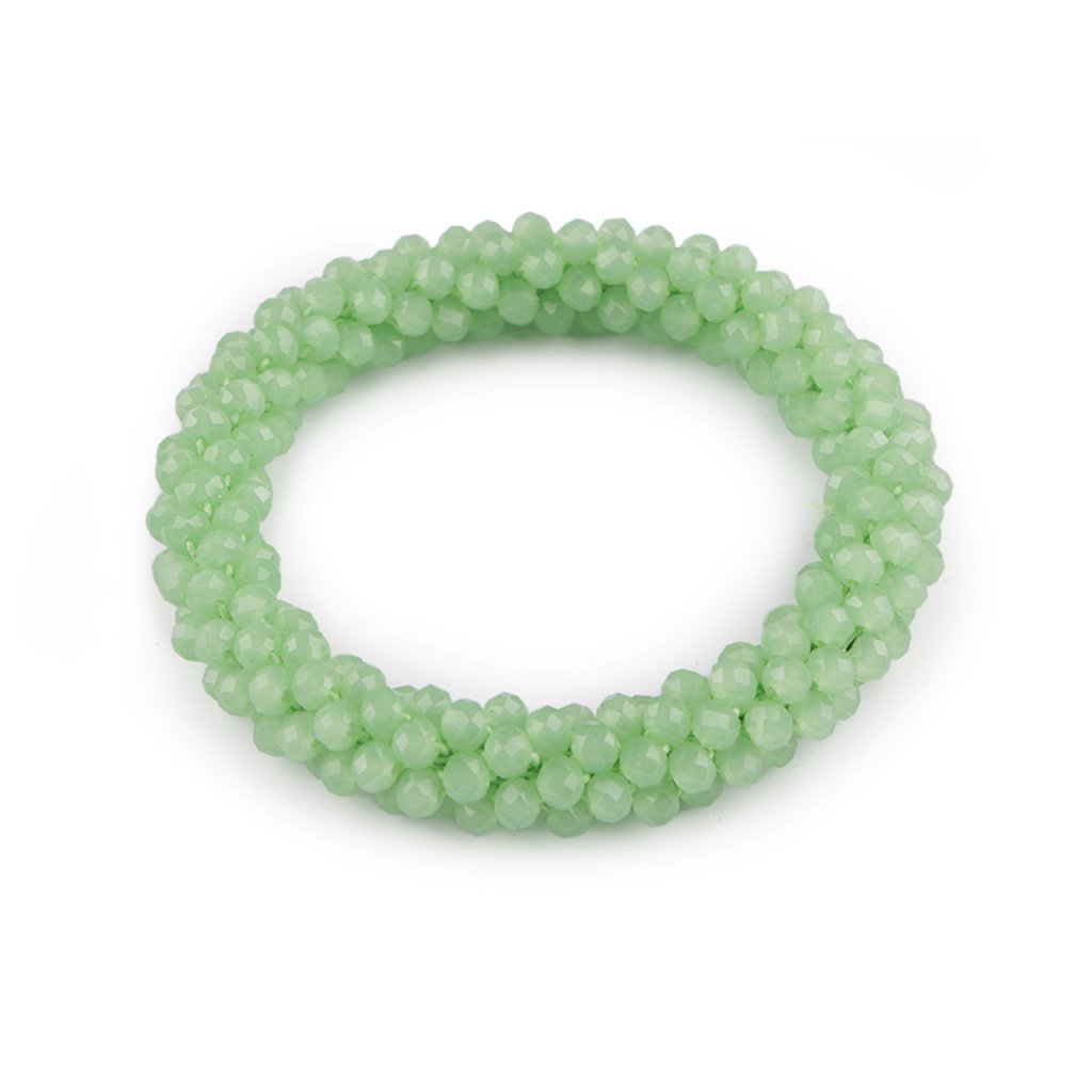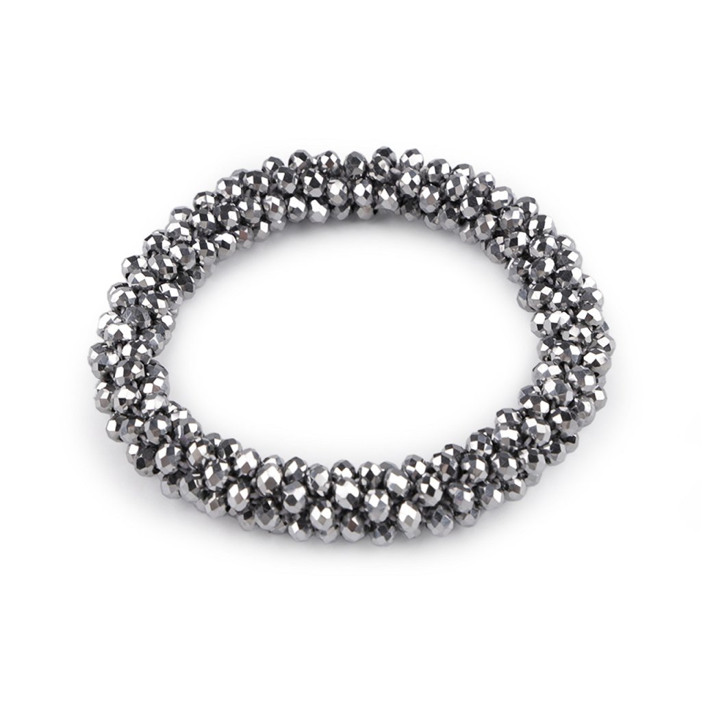 Elegantní náramek ze skleněných korálků zaujme svým třpytem a precizním zpracováním. Brus na korálcích způsobuje působivý lesk. Díky pružence má univerzální velikost, snadno se natáhne na ruku.