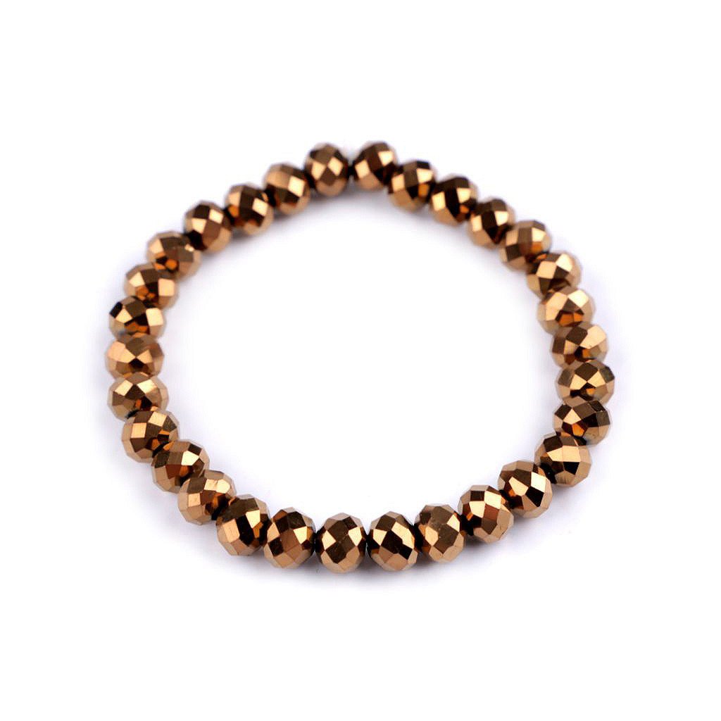 Na třpytivém náramku ze skleněných korálků oceníte jeho efektní vzhled. Precizní brus na korálcích způsobuje působivý lesk. Díky pružence má univerzální velikost, snadno se natáhne na ruku.