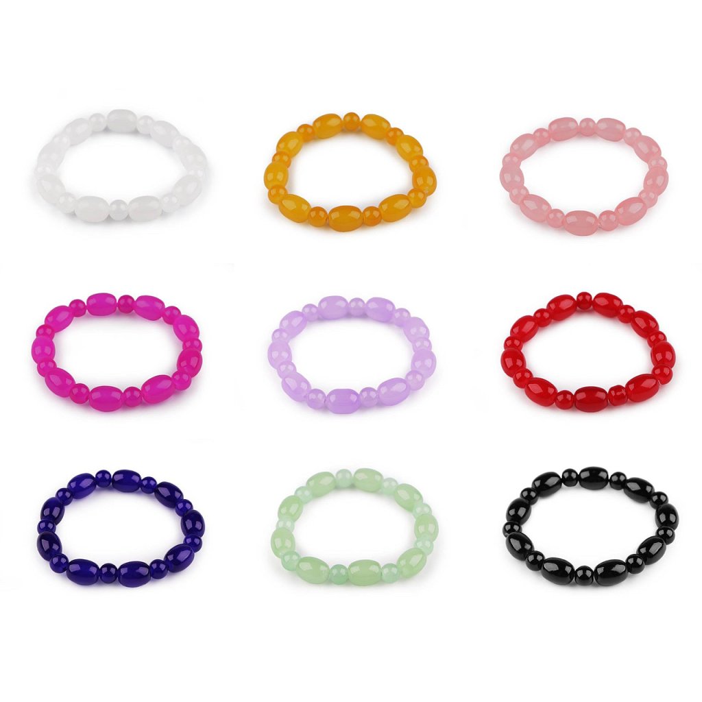 Náramek ze skleněných korálků má svěží vzhled, elegantně se leskne. Na náramku se kombinují korálky olivy s kulatými. Díky pružence má univerzální velikost, snadno se natáhne na ruku. Vkusně ozdobí zápěstí na běžné nošení k halence i tričku, hodí se i na slavnostní události. Zkuste kombinovat více kusů a barev dohromady, výsledek bude efektnější.