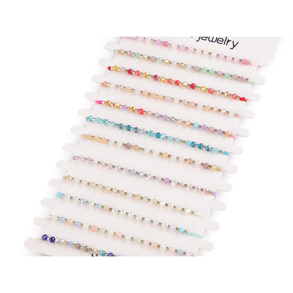 Náramky v mixu se prodávají jako sada 12 ks na papírové kartě k zavěšení.