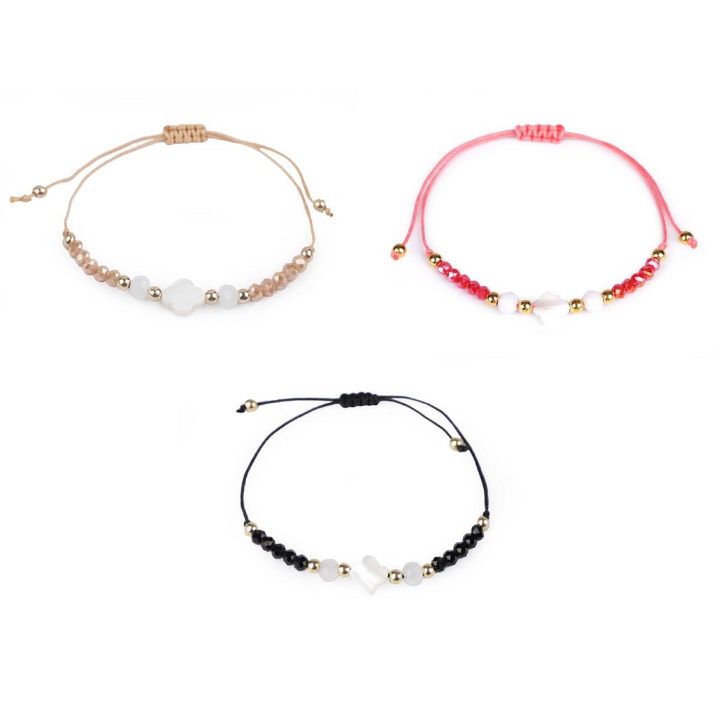 Shamballa náramky s korálkem z přírodní perleti jsou úžasným doplňkem letního outfitu. Hodí se jak k šatům, tak k halenkám, tričkům i plavkám. Perleť doplňují skleněné broušené a kovové korálky. Některé náramky mají AB efekt, jenž způsobuje zajímavé světelné odlesky. Zapínání je posuvné, oba konce náramku procházejí středovým uzlem, který umožňuje utažení šňůrek. Náramek má univerzální velikost.